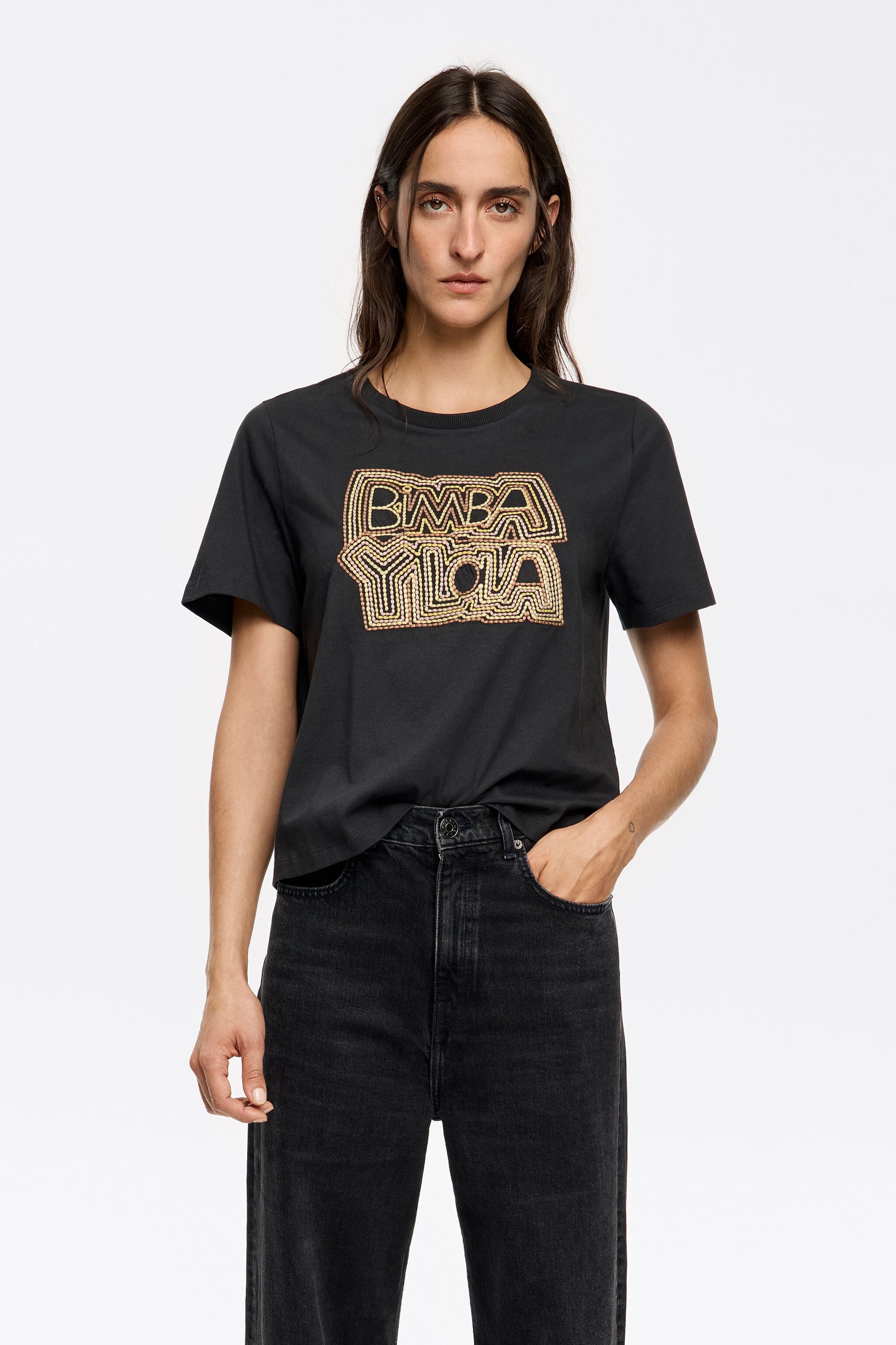 Cotton T-shirt in a faded black color. Straight cut with crew neck, short sleeve and exterior customized with embroidered logo.