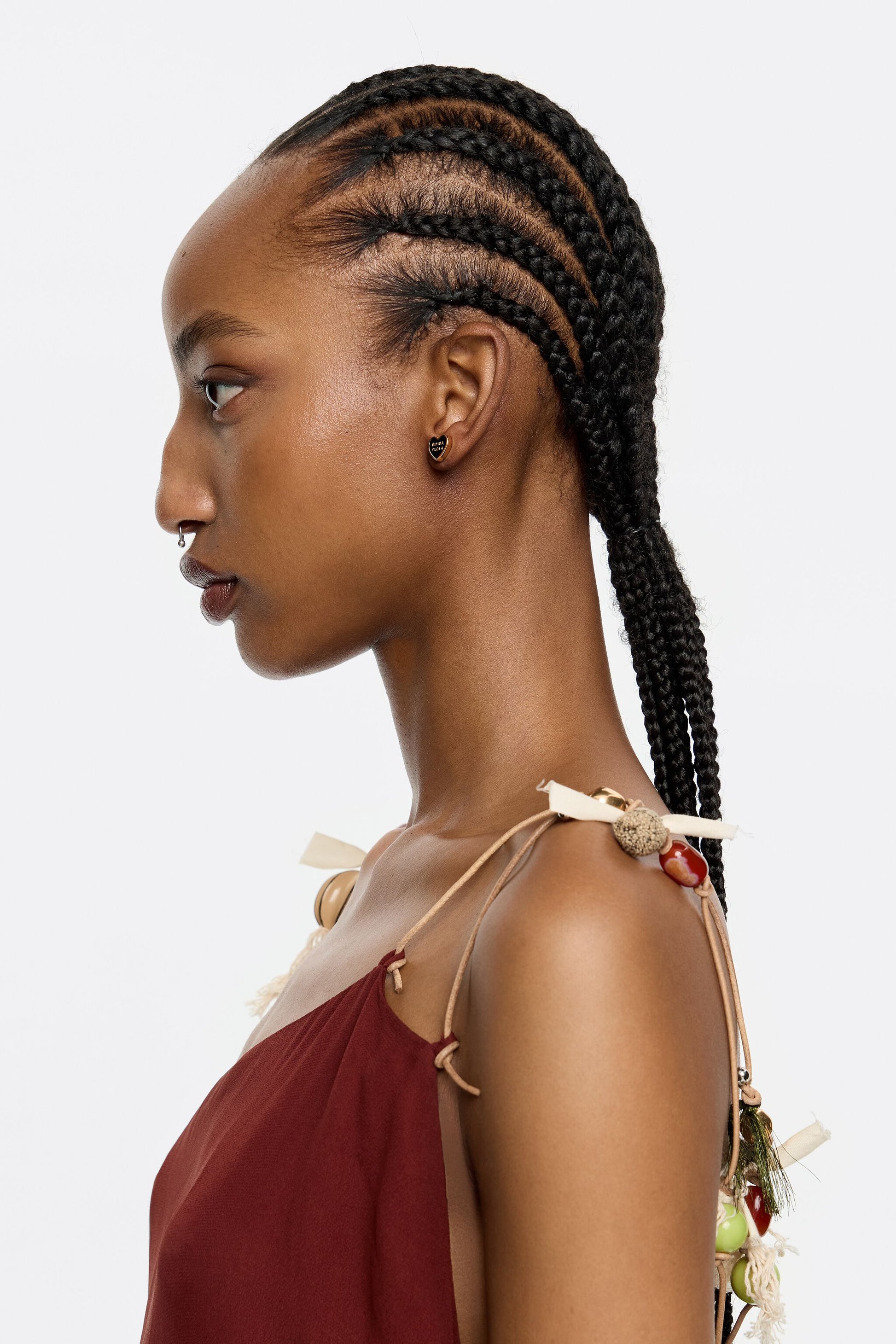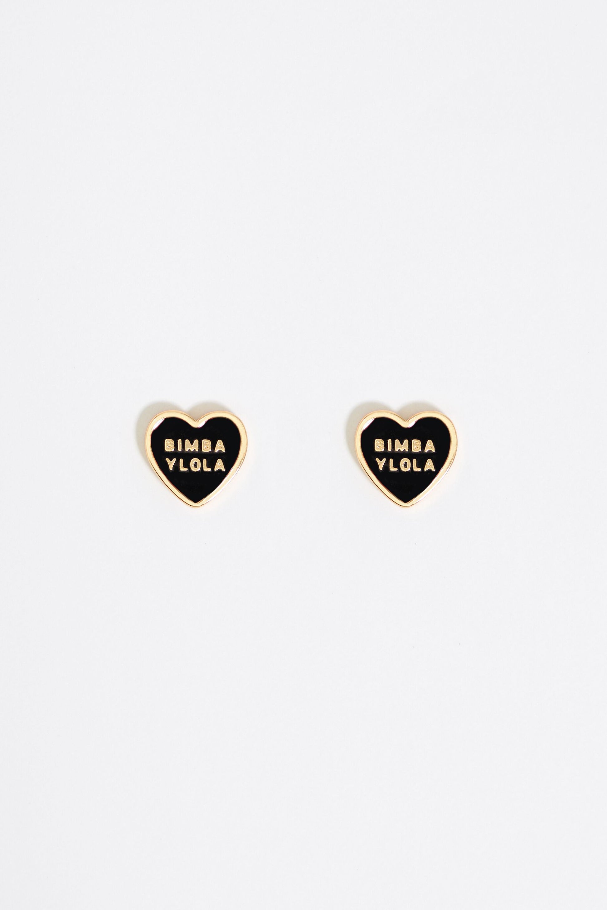 Gold metal earrings with Heart logo in black. Model customized with engraved logo.