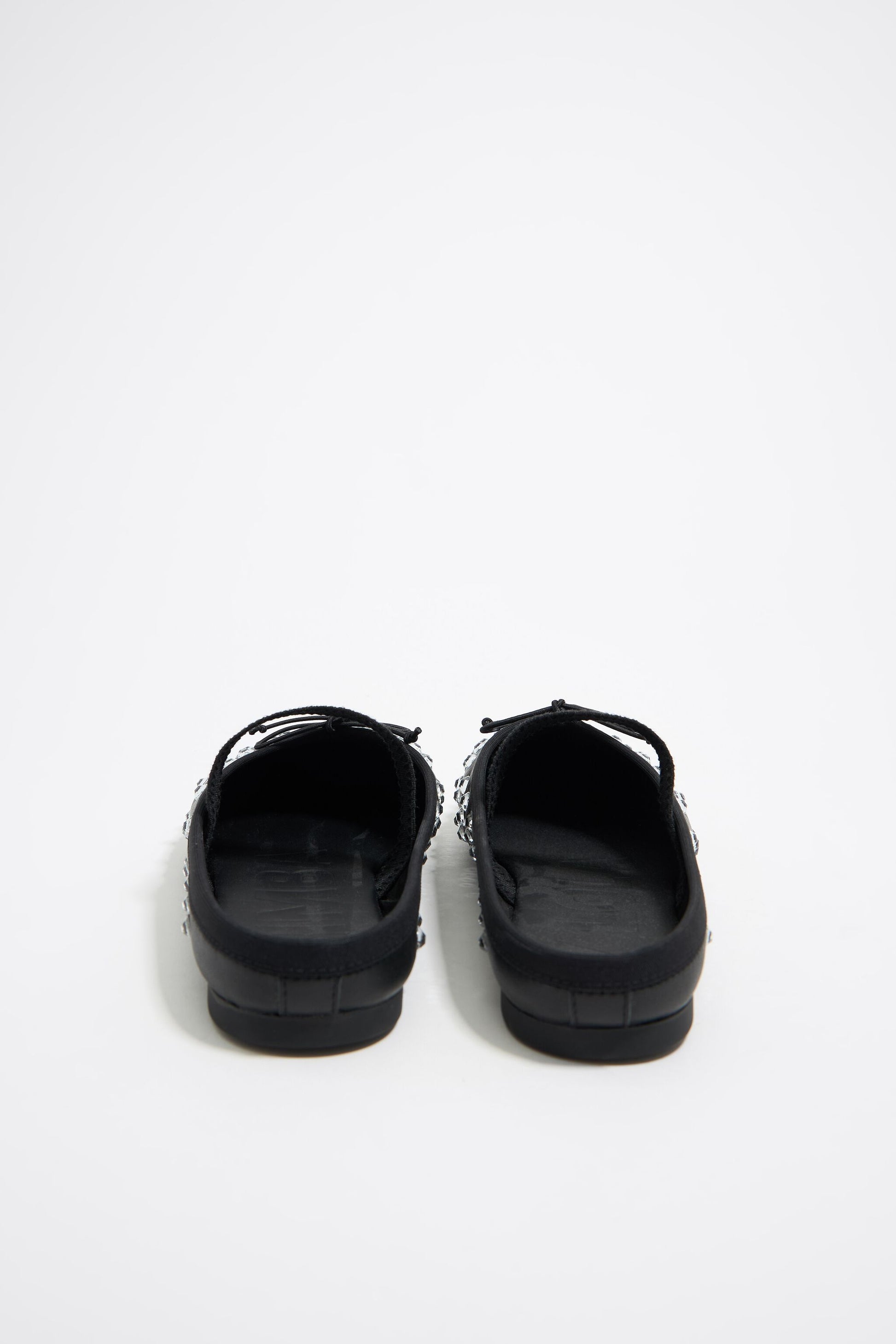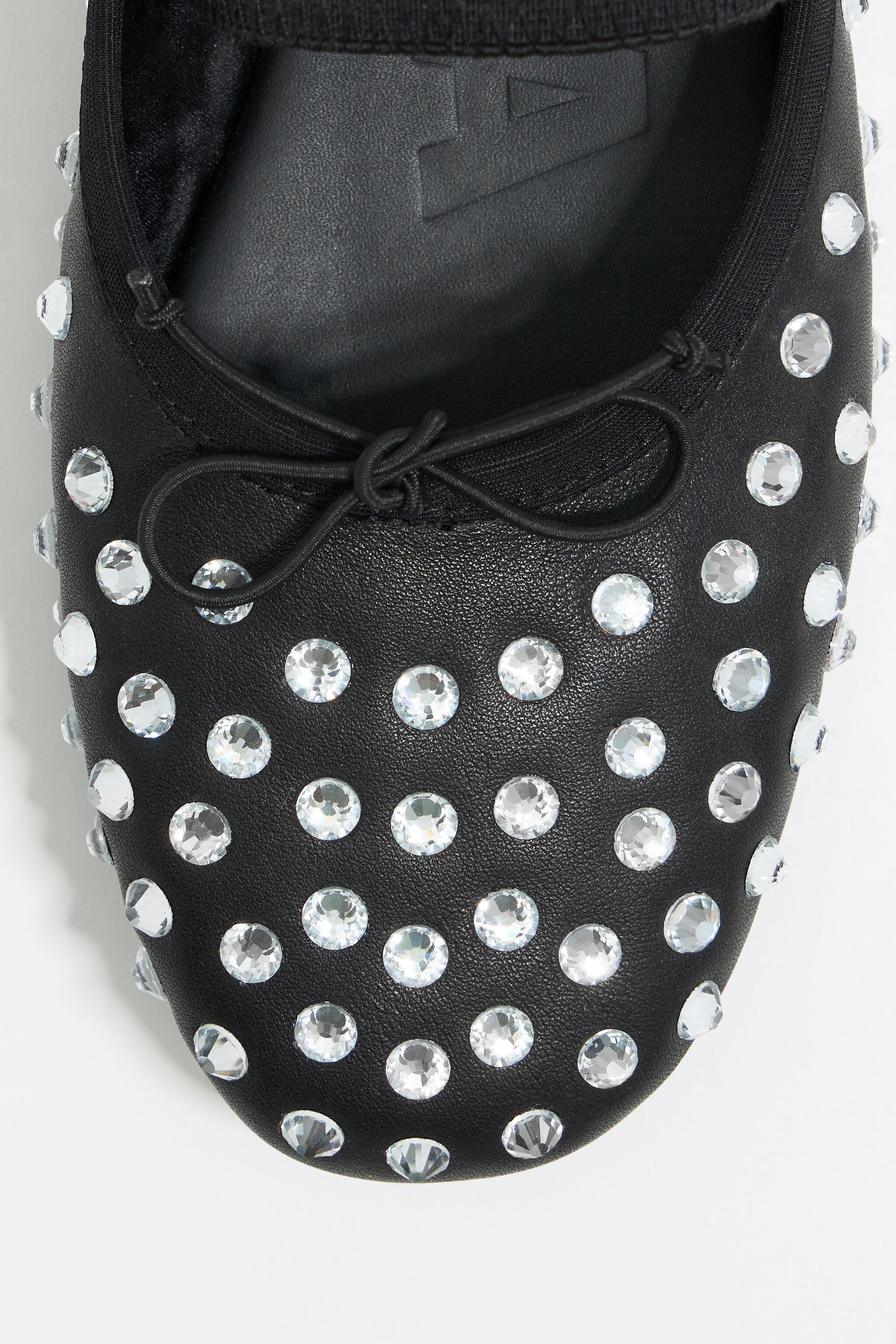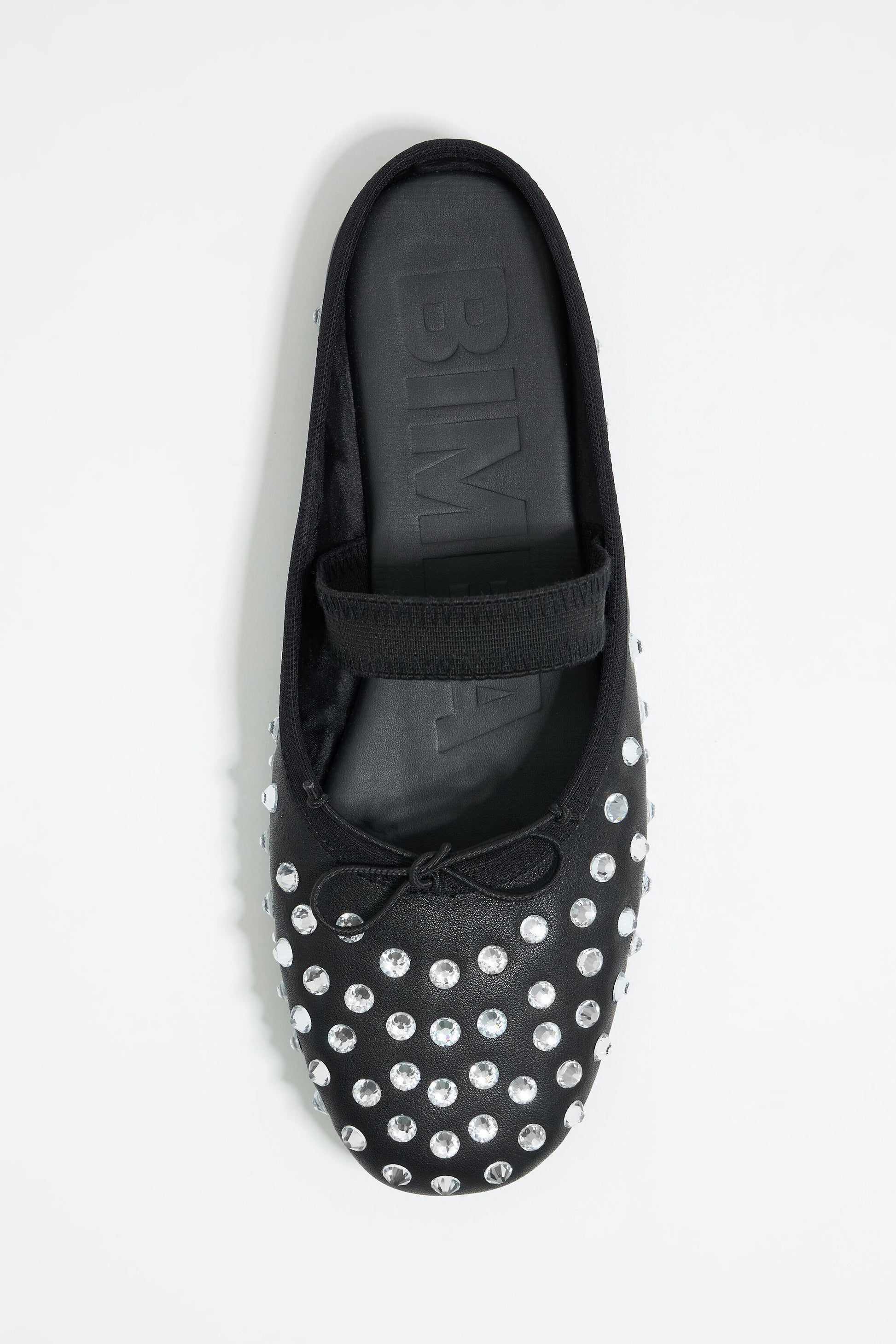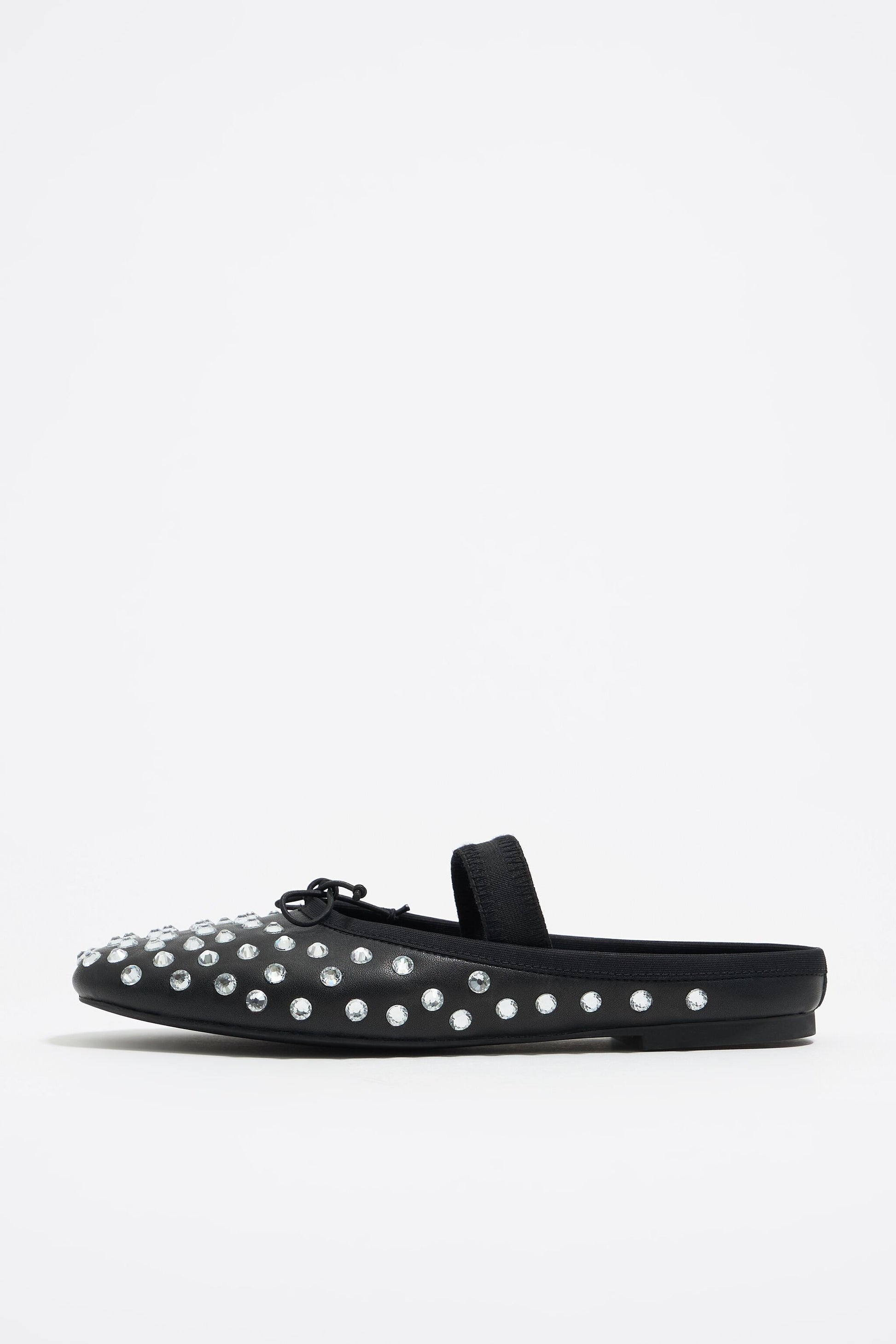 Leather slingback ballerina in black with crystals. With round toe and tonal elastic strap. Insole with engraved logo and rubber logo sole.
