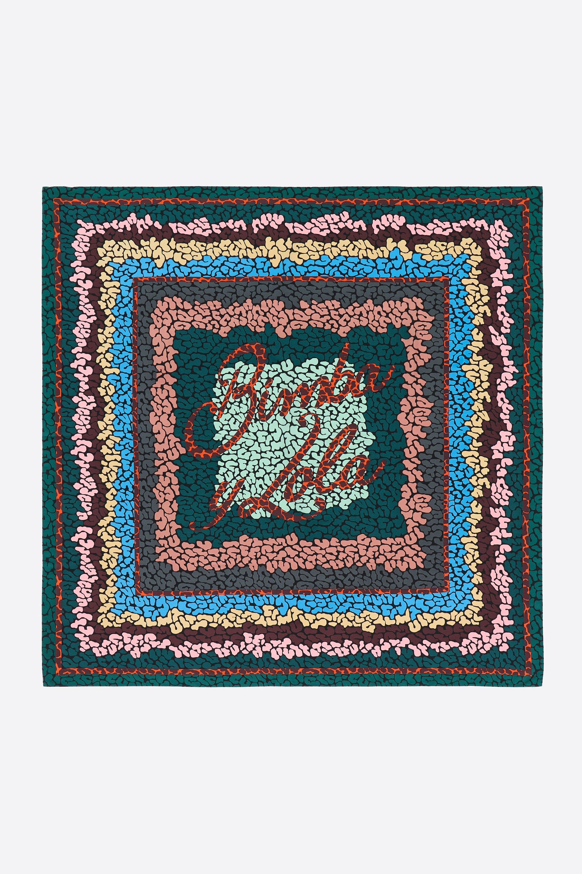 Scarf with borders with Leopard print and logo on a black background. 100% Recycled polyester.