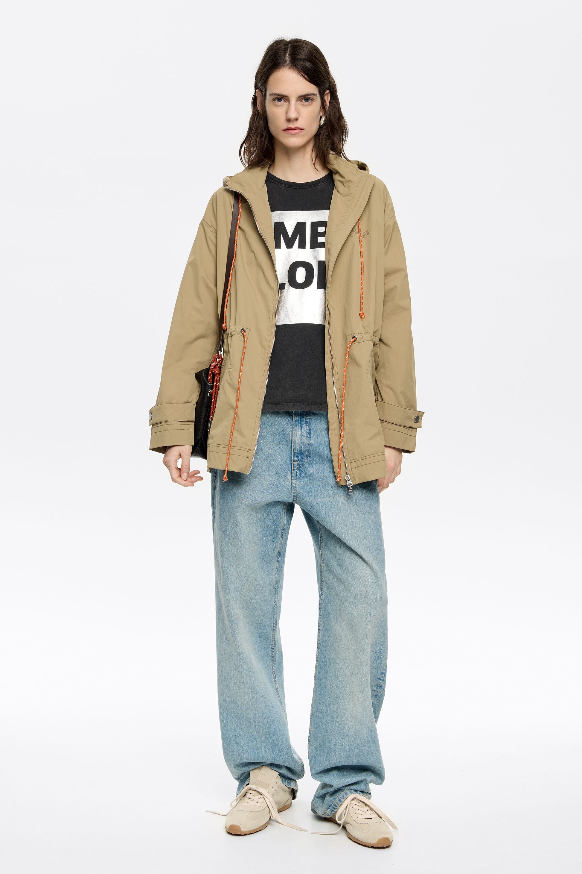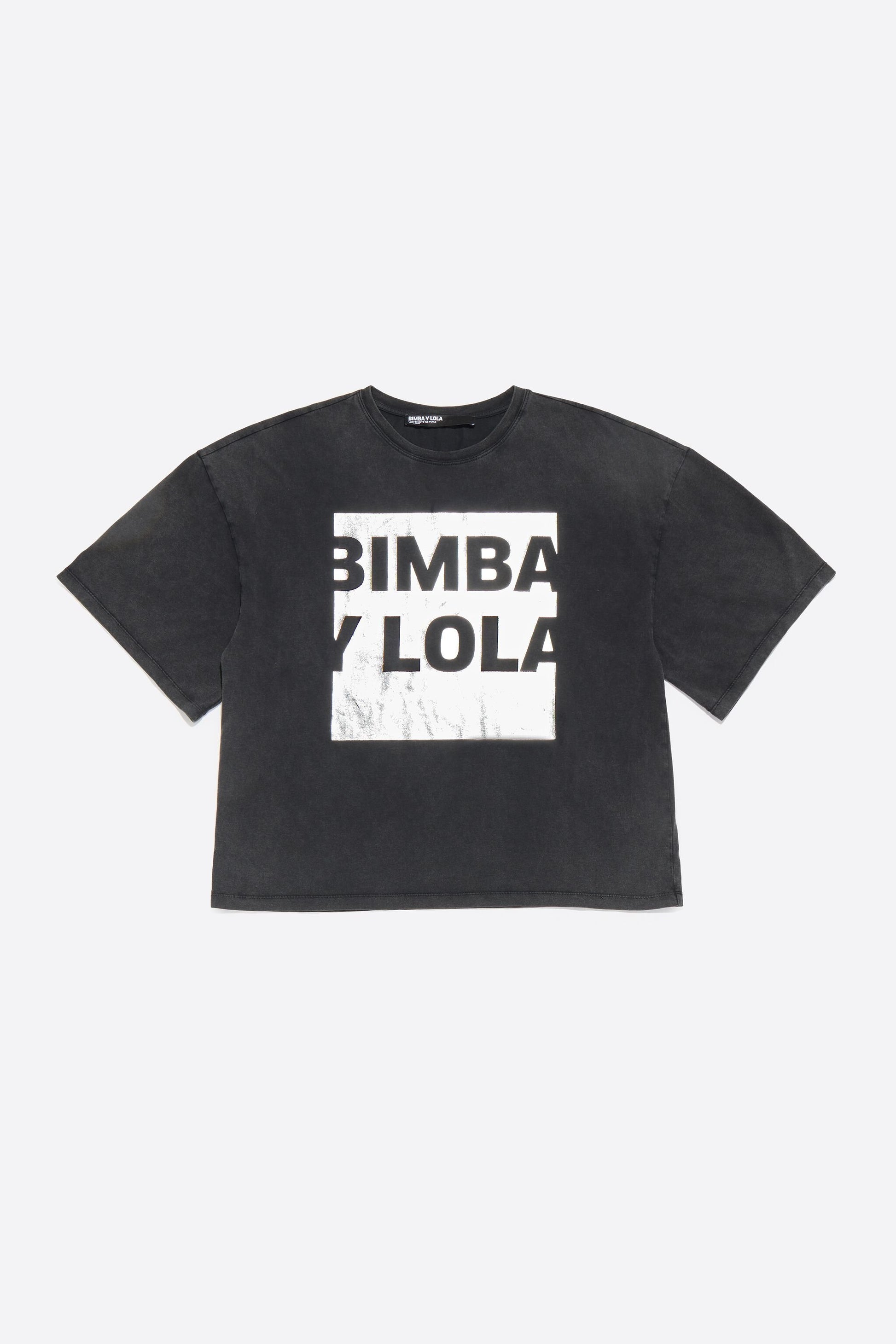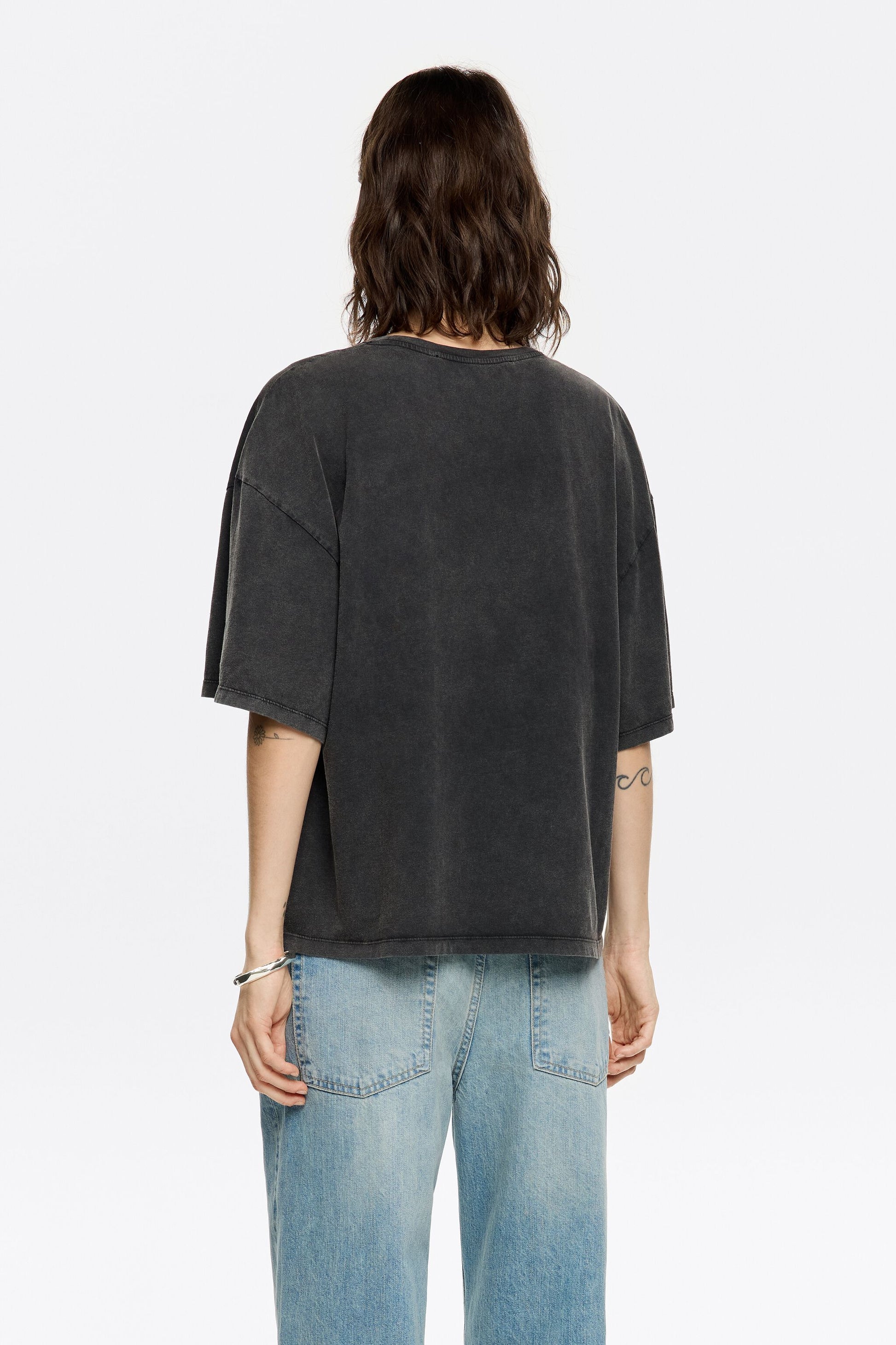 Flowing T-shirt in washed black. Straight cut with crew neck and short wide sleeve. Exterior customized with front logo print.