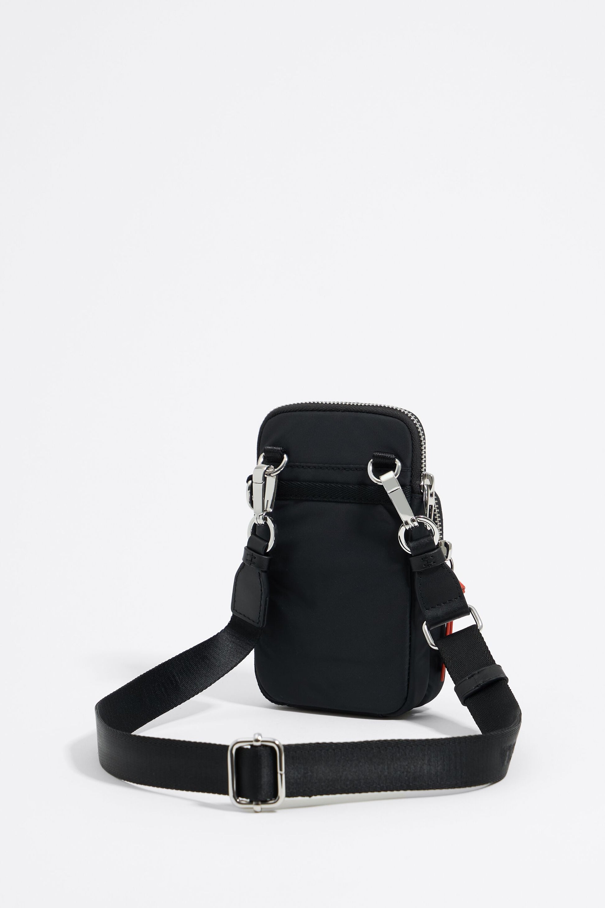 Nylon mini bag in black. Model with zip fastener, fabric strap, interior card holder and leather details. Exterior customized with LB logo.
