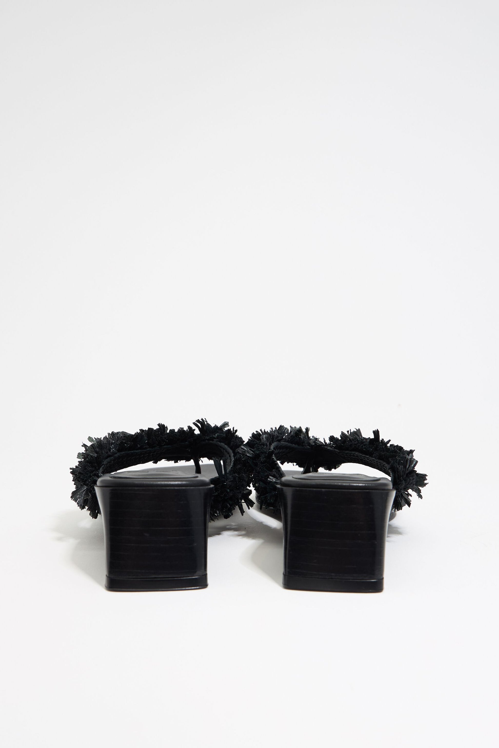 Raffia gladiator sandal with heel in black. Slingback model with semi-square toe, engraved logo on insole and logo sole.