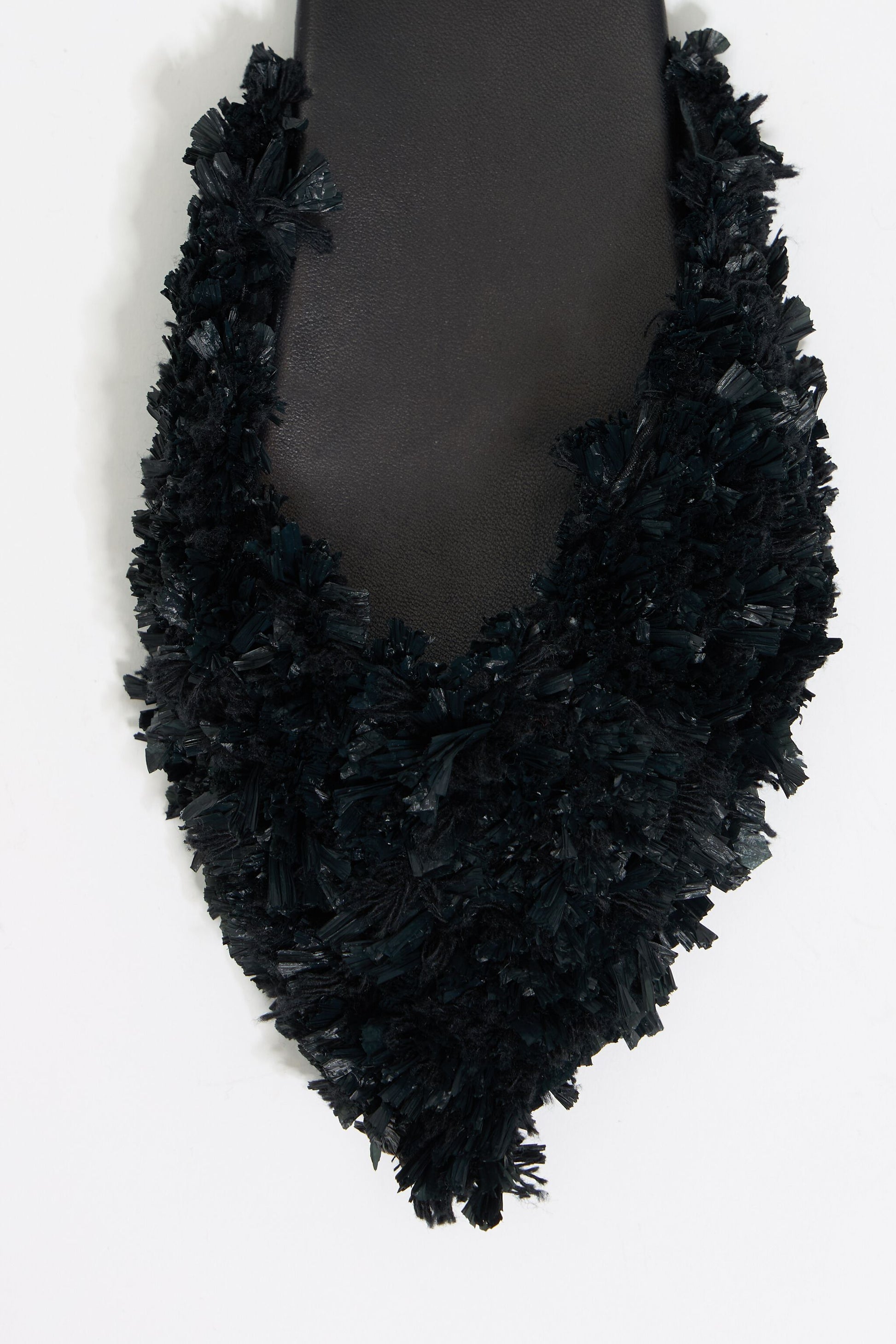 Slingback raffia ballerina in black. Slingback model with pointed toe, engraved logo on insole and logo sole.