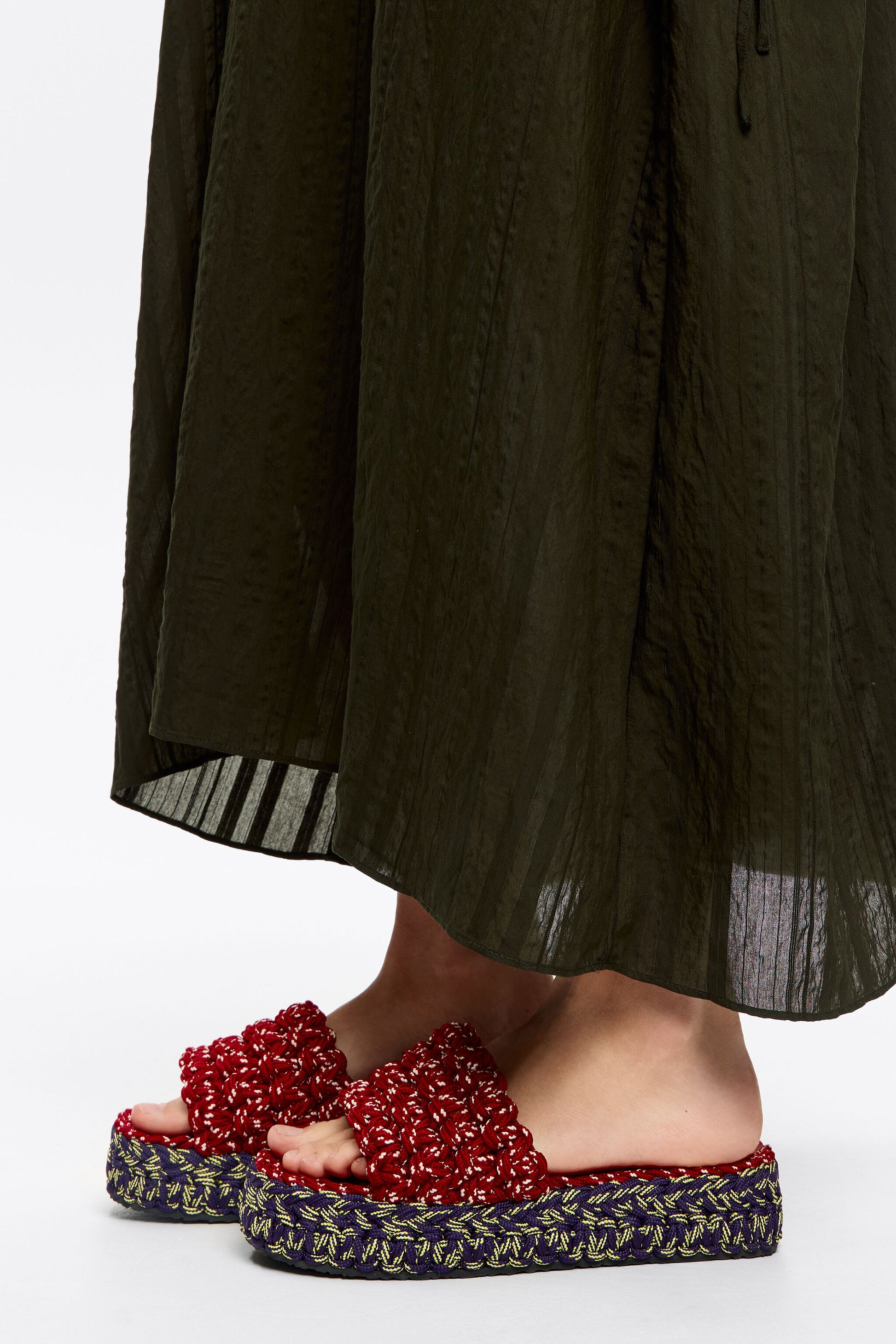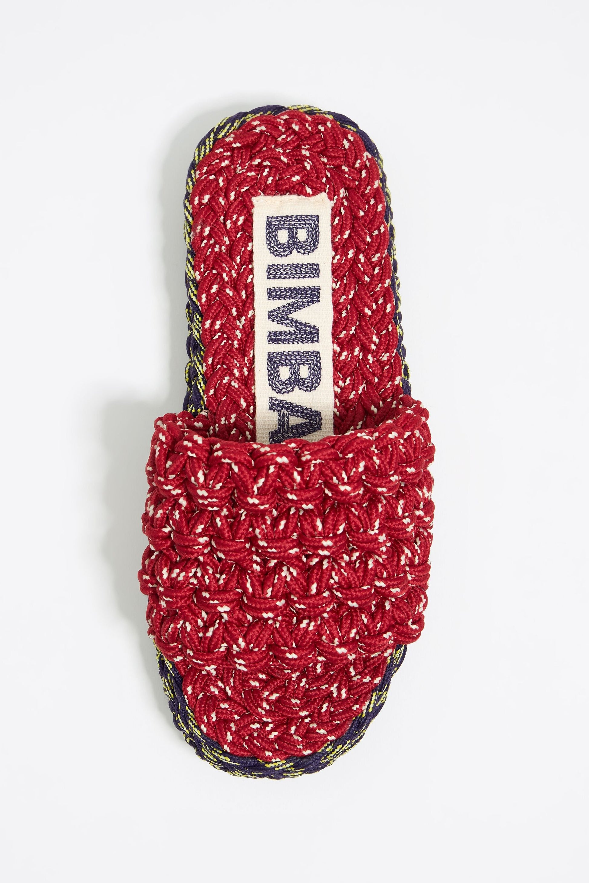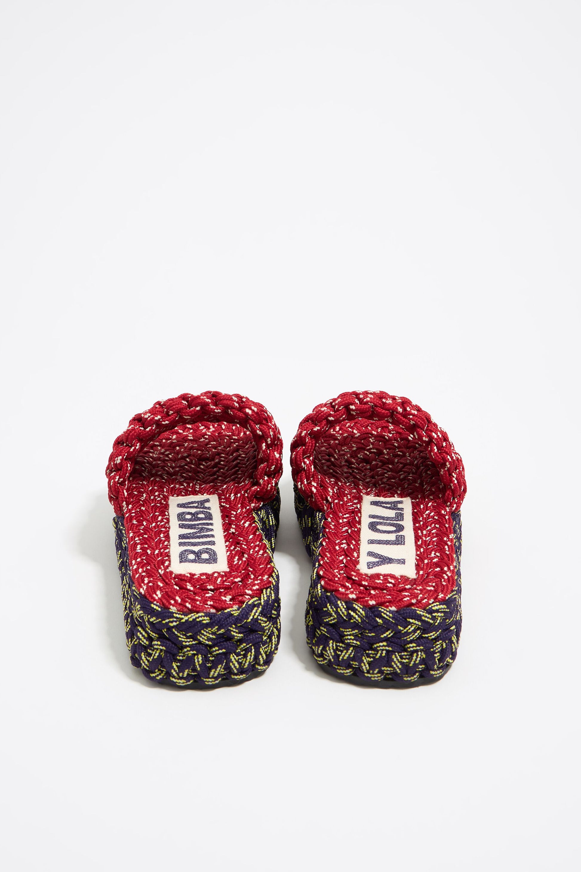 Blue and red plaited rope platform sandal
