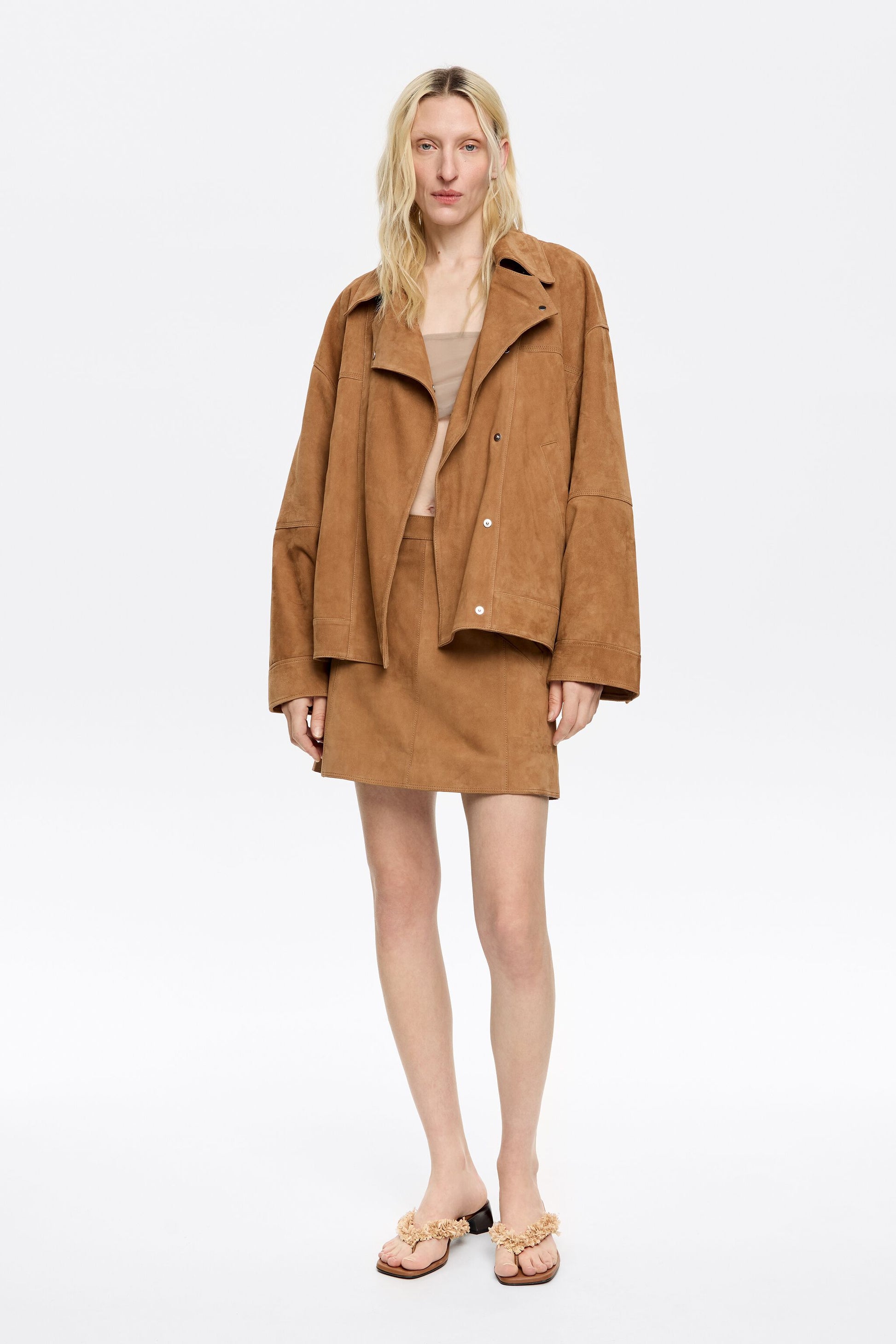 Camel leather miniskirt