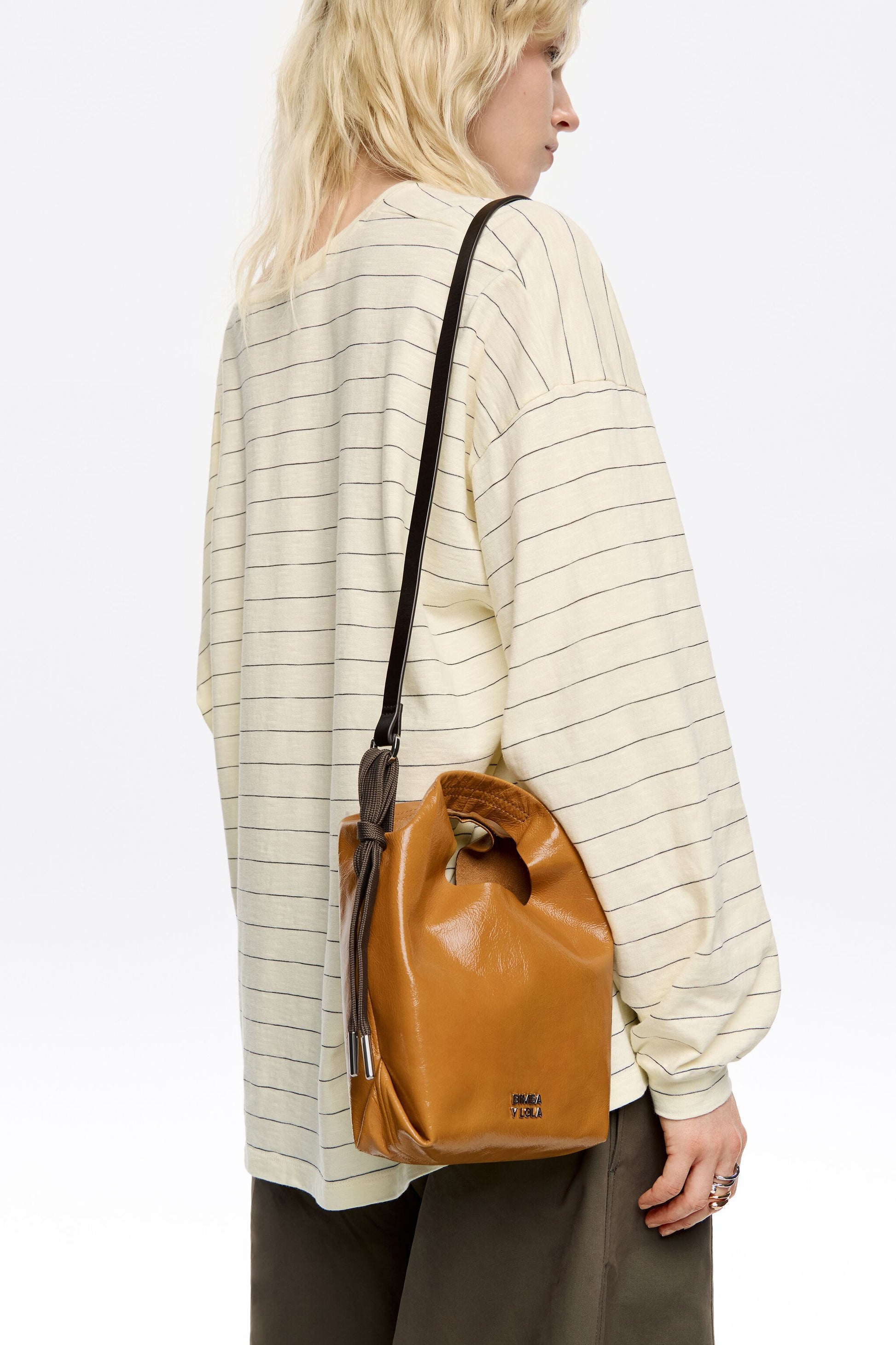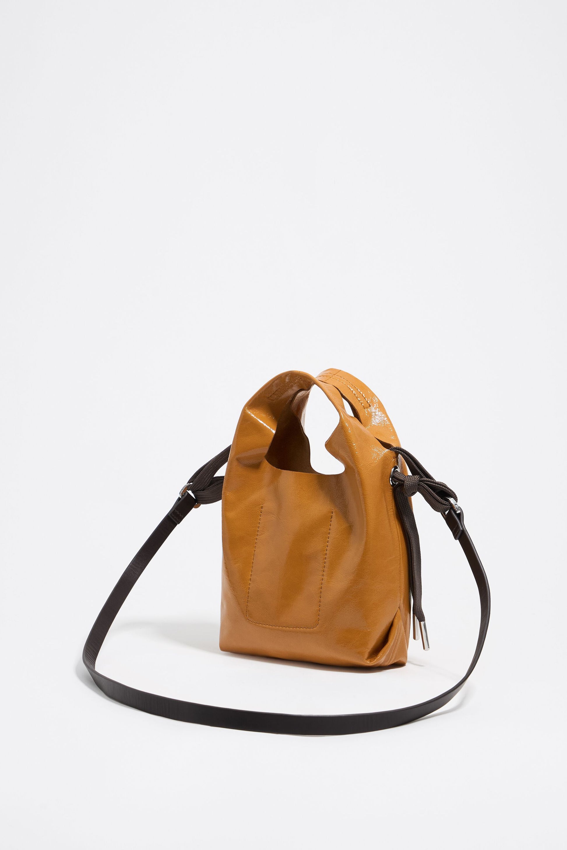 Caramel leather mini Paper bag