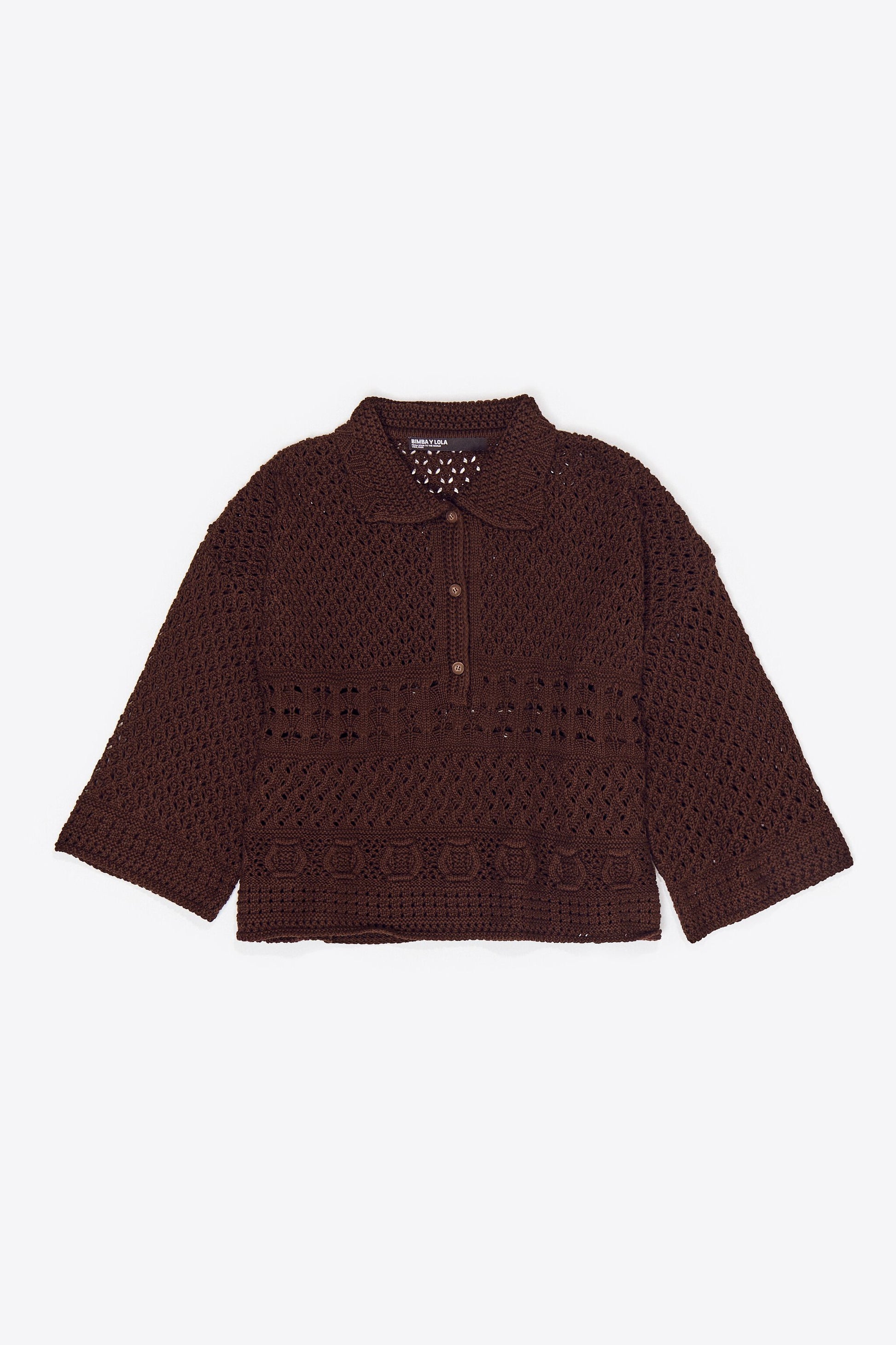 Dark brown crochet polo shirt