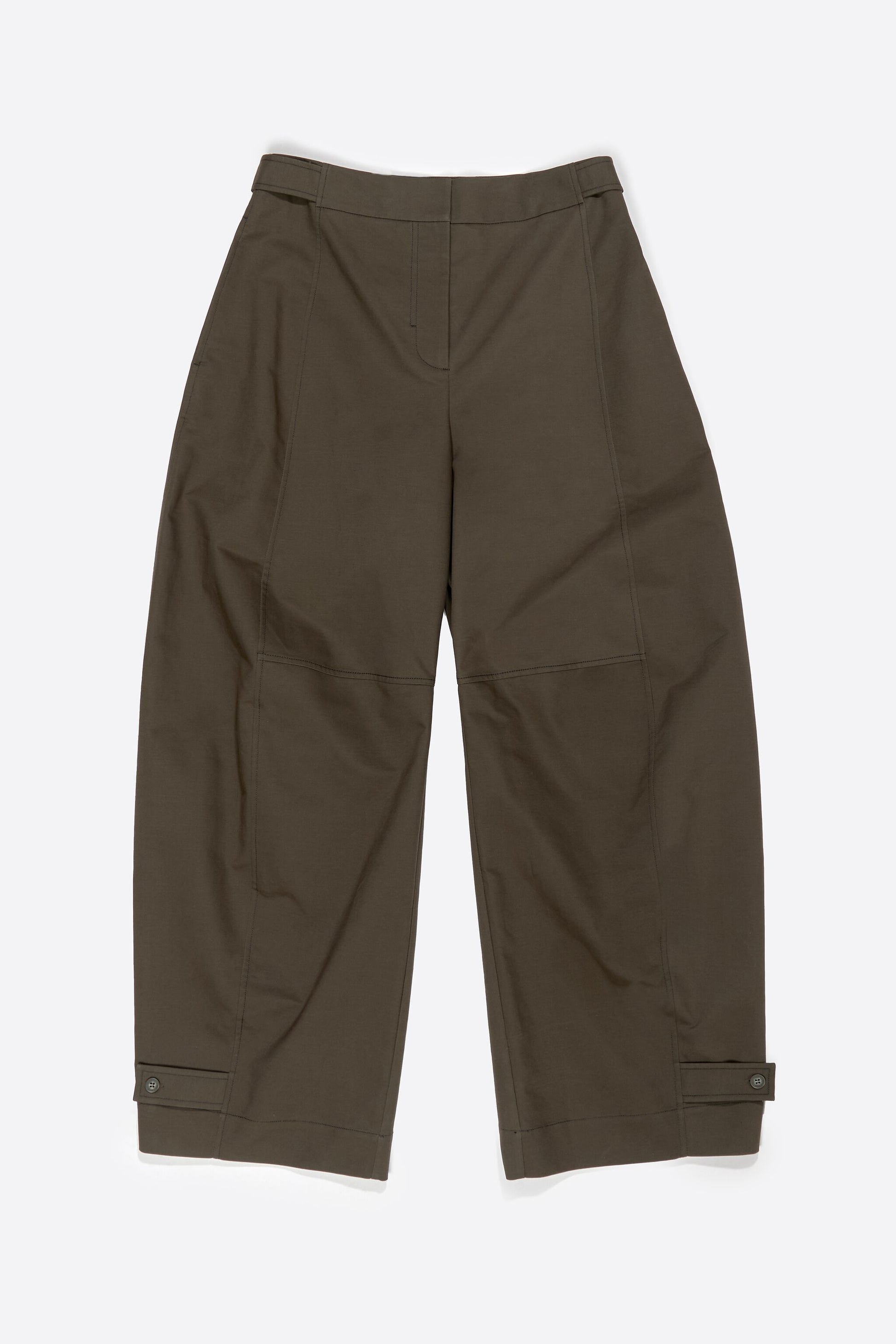 Dark khaki adjustable barrel leg trousers
