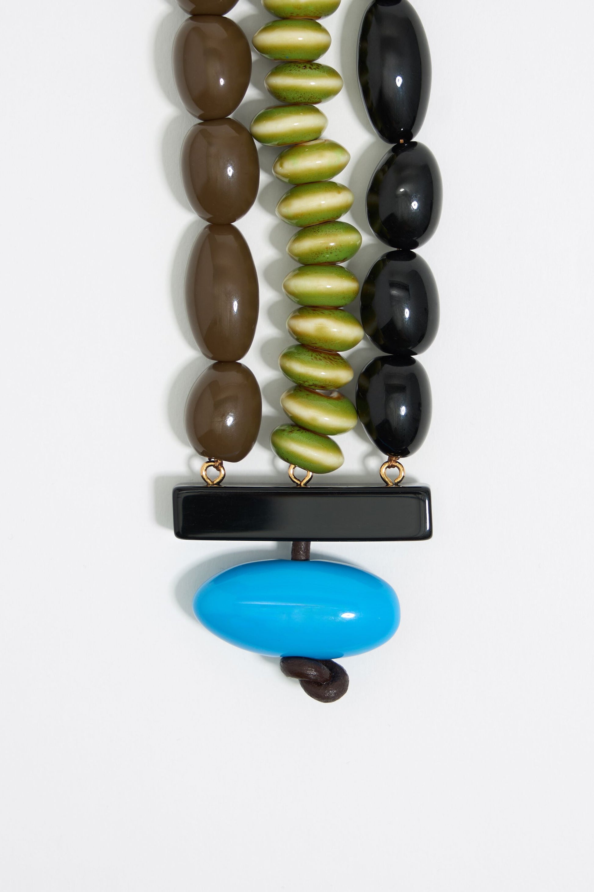 Necklace with ceramic beads and flower. Model customized with engraved logo.