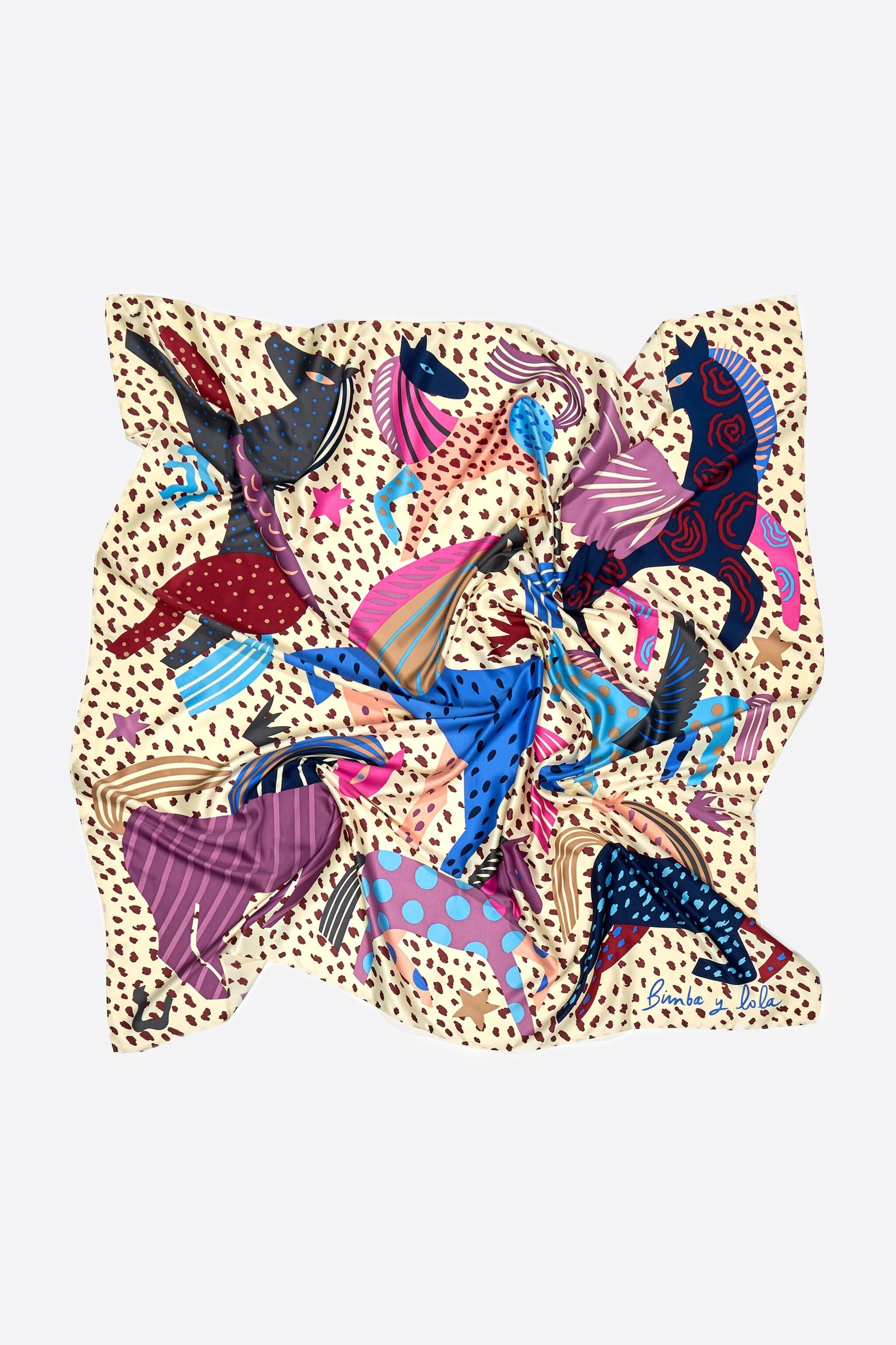 Horse scarf in garnet with mini prints and splodge print. 100% recycled polyester.