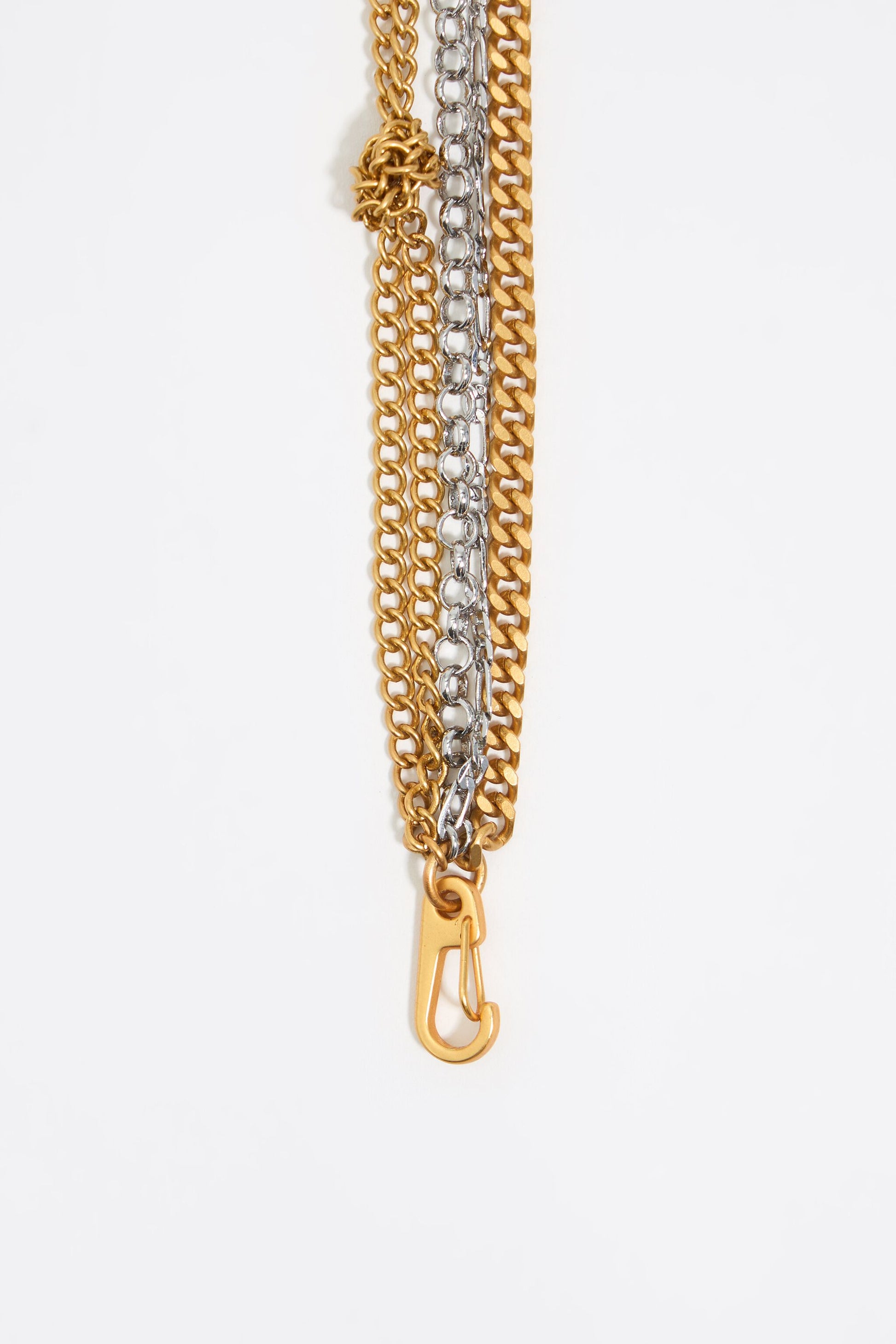Gold tone layered chain bracelet with sun pendants. Model customized with engraved logo.