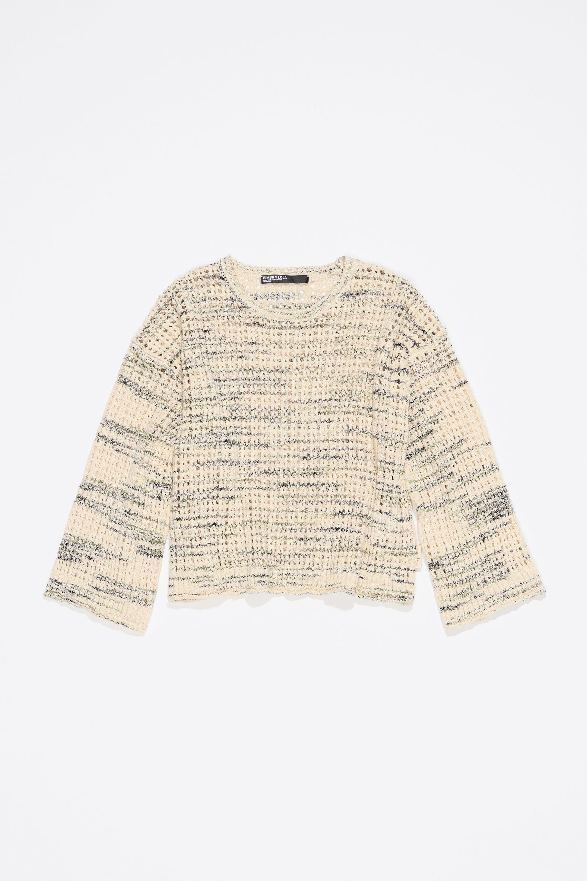 Cotton blend sweater in ivory. Boxy cut, with crew neck, long sleeve and multicolor yarn.