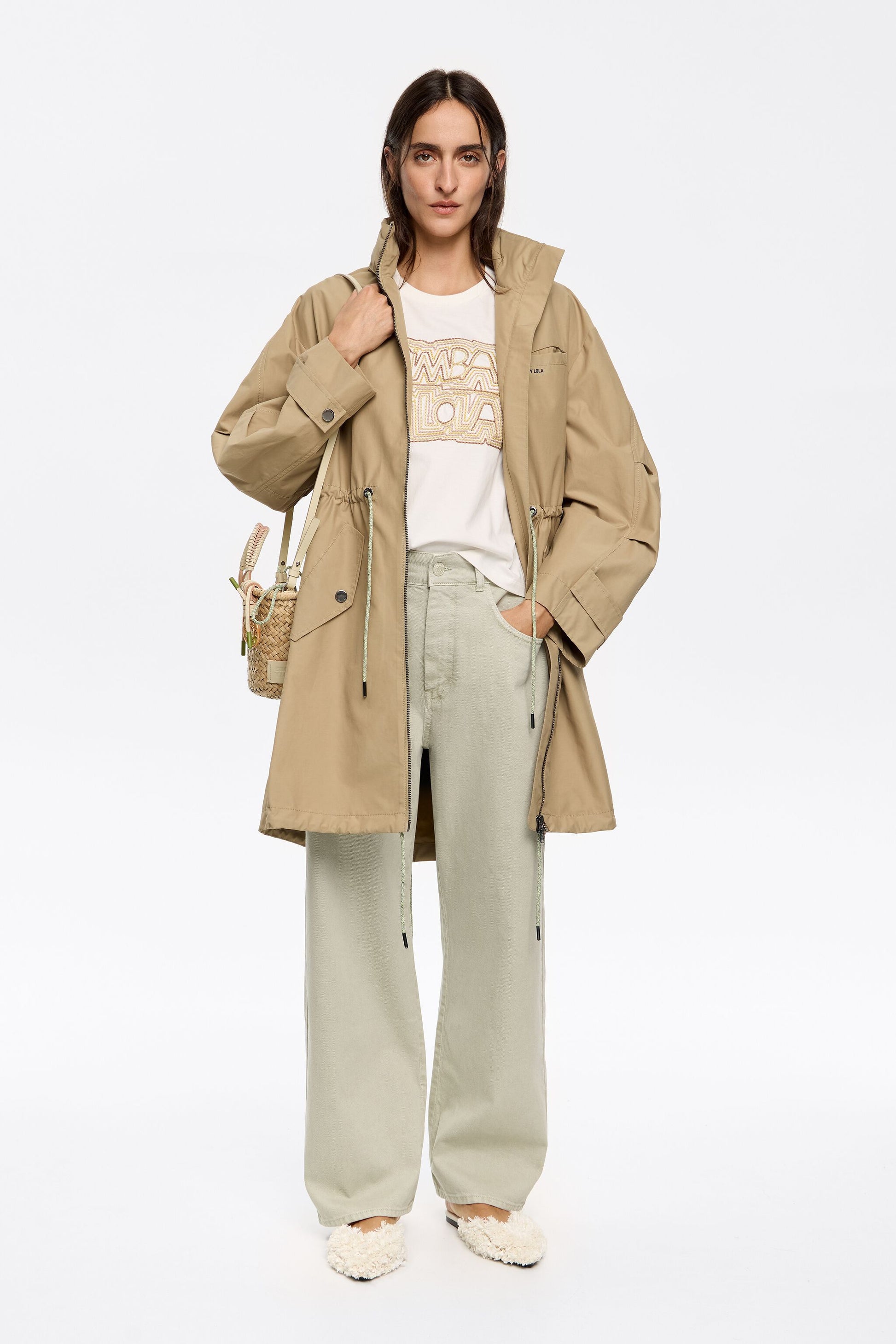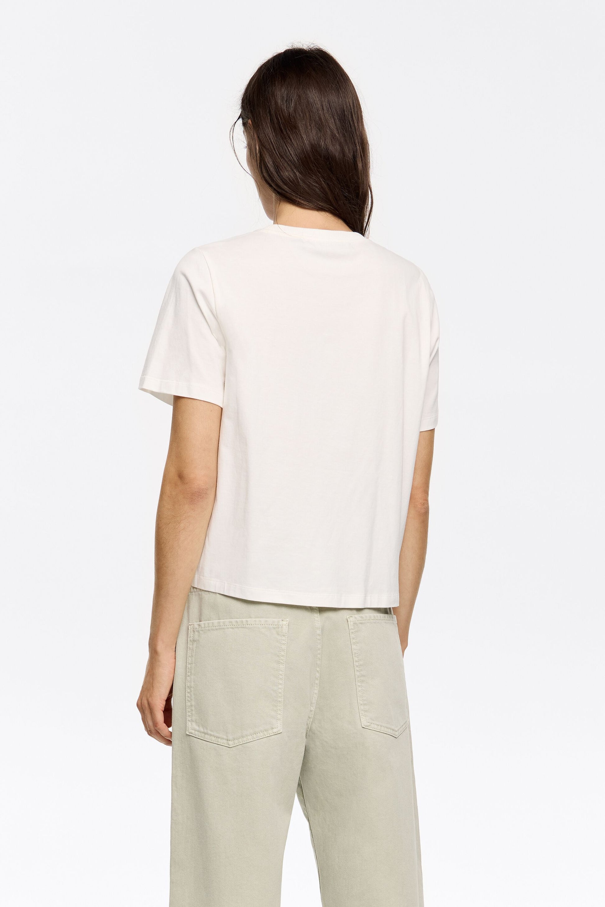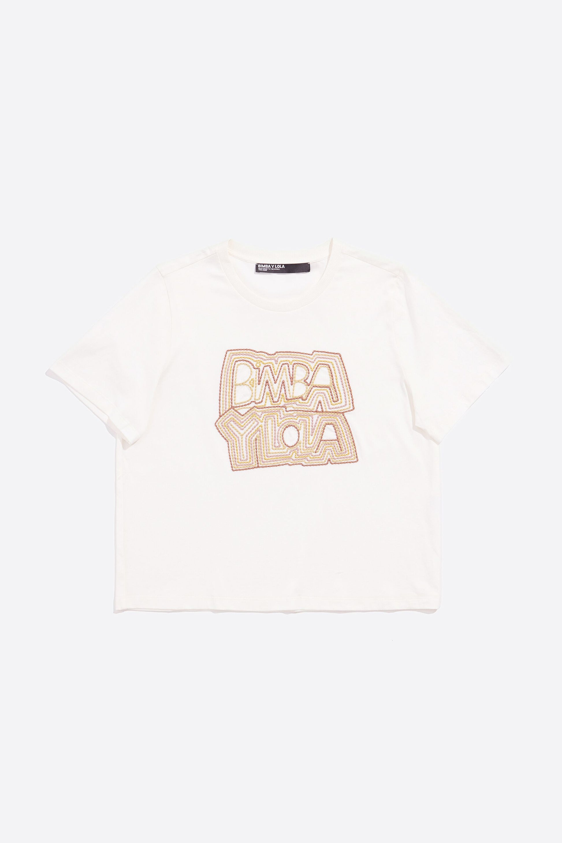 Cotton T-shirt in ivory. Straight cut with crew neck, short sleeve and exterior customized with embroidered logo.
