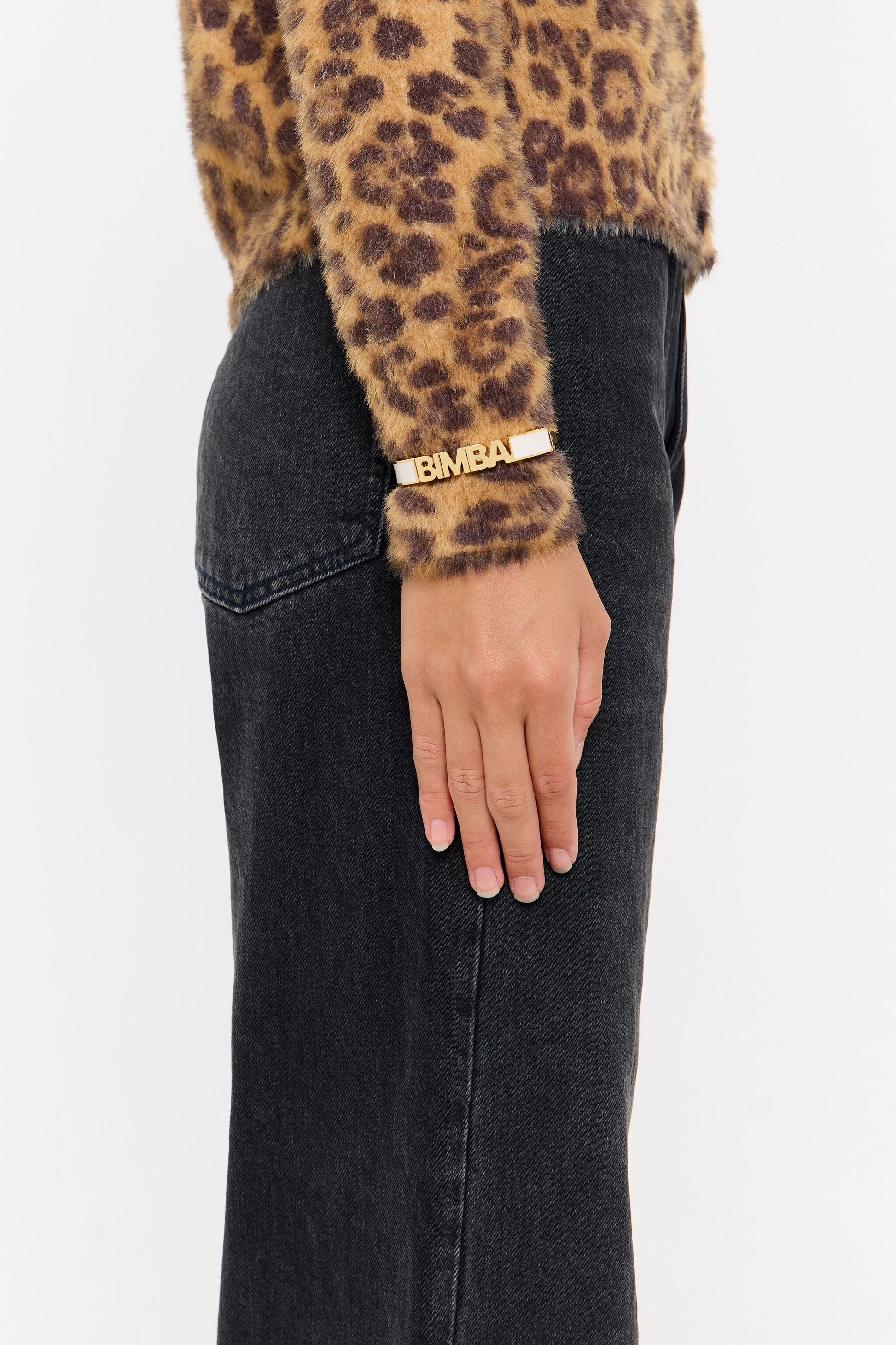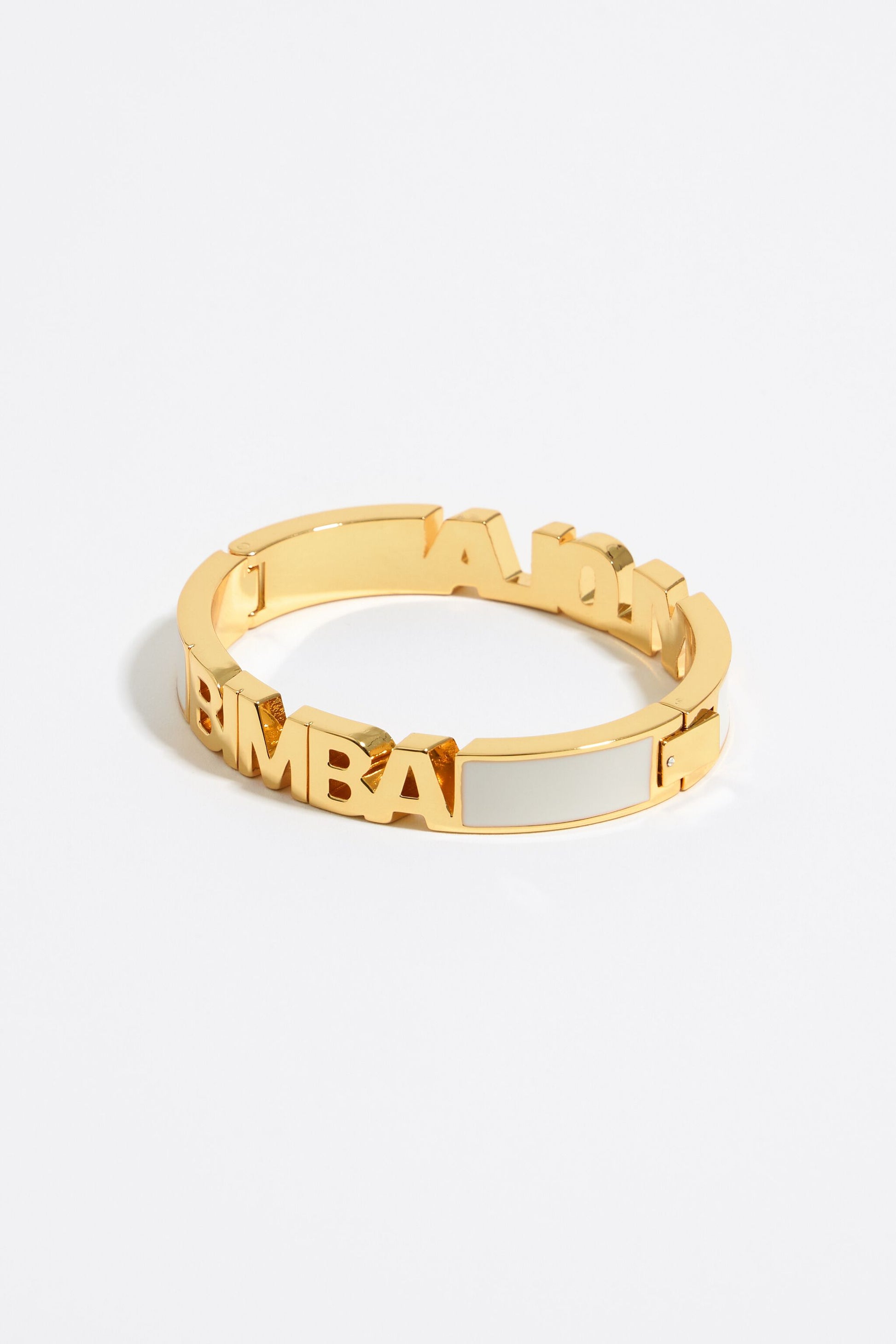 Gold-tone metal bracelet with logo and enamel in ivory. Model with hinge fastener.