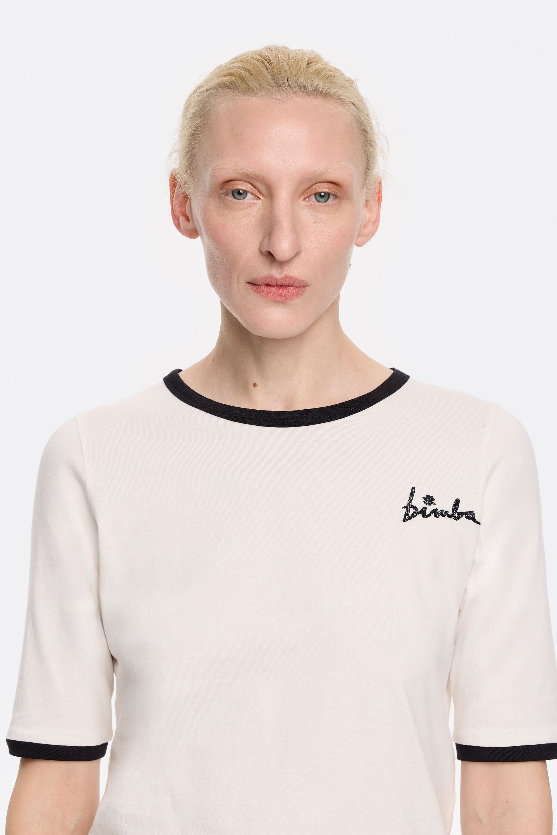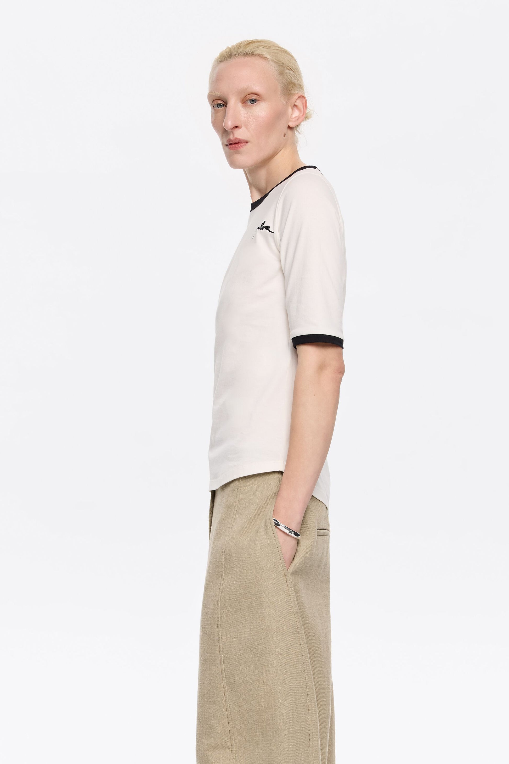 Ivory fitted T-shirt with piping