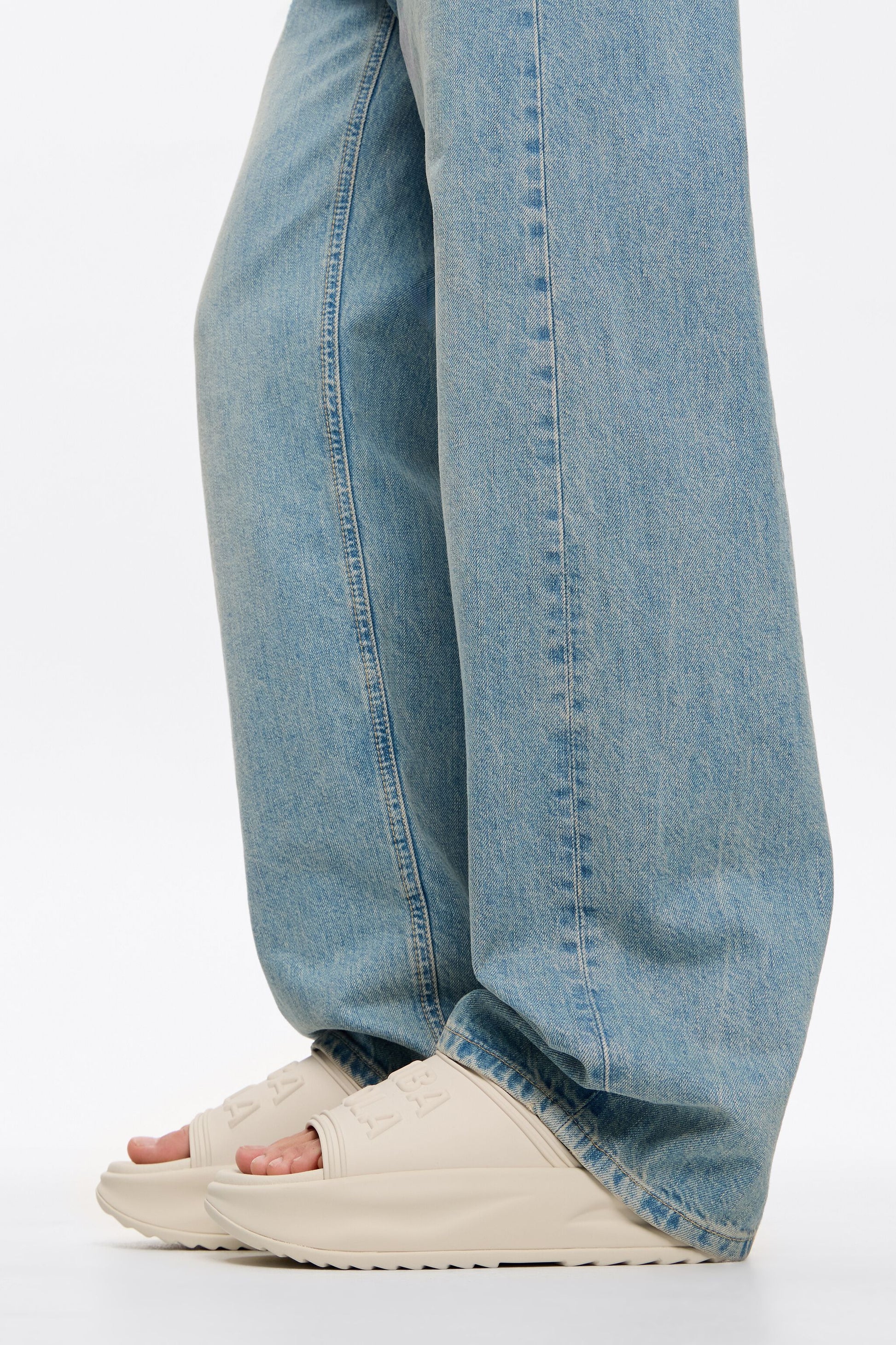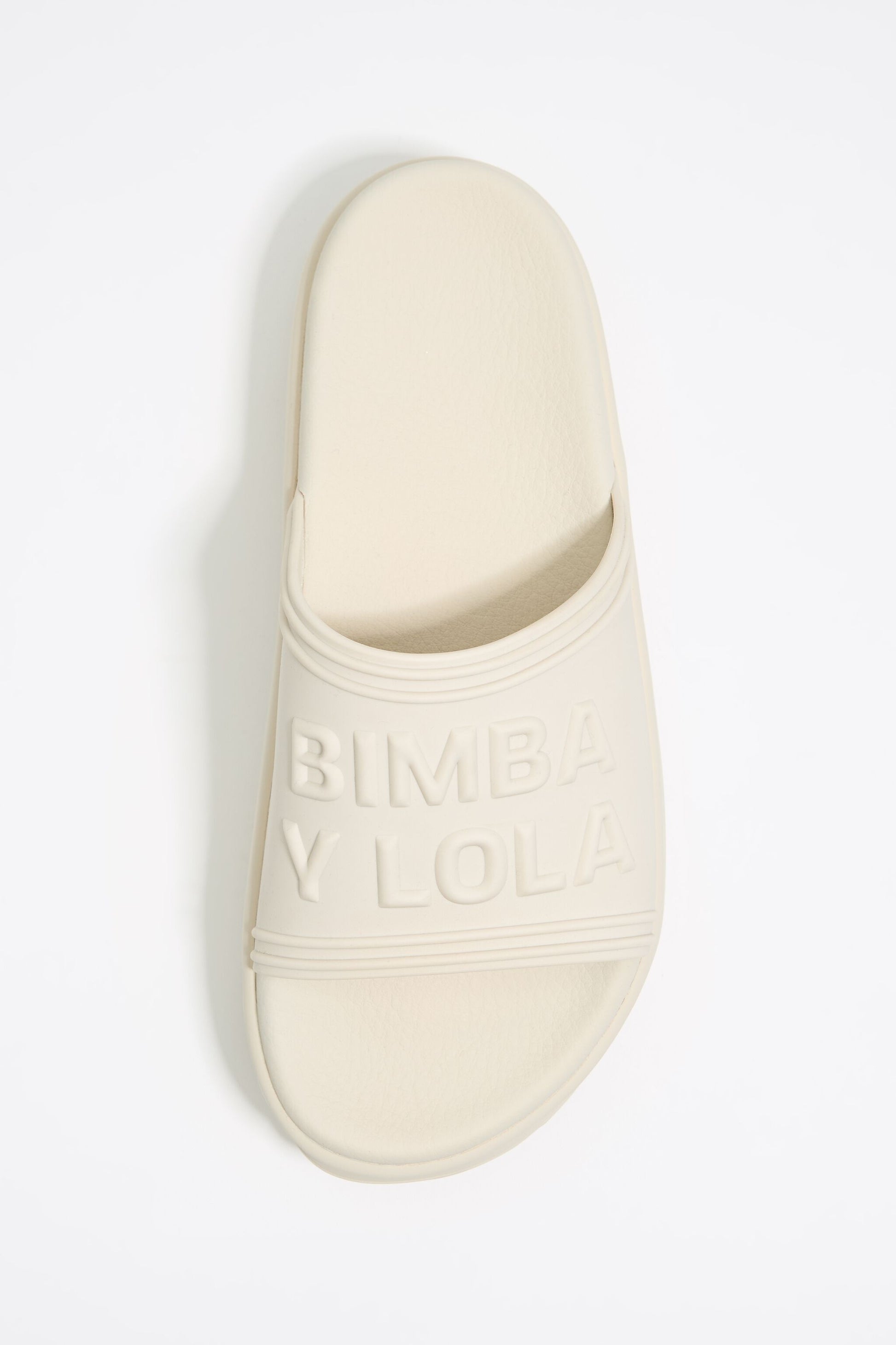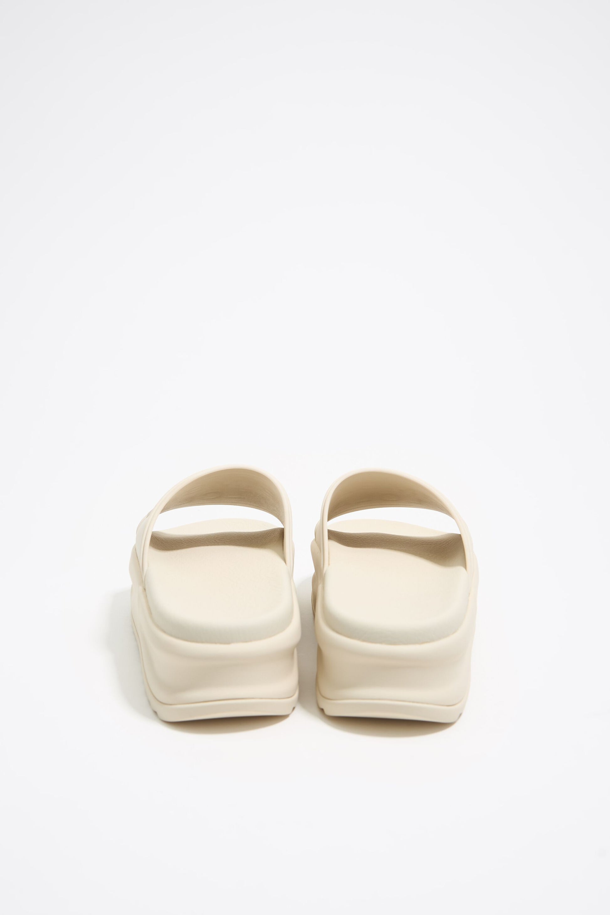 Platform slider in ivory with organic lines. Model with logo strap. Logo sole with serrated finish.