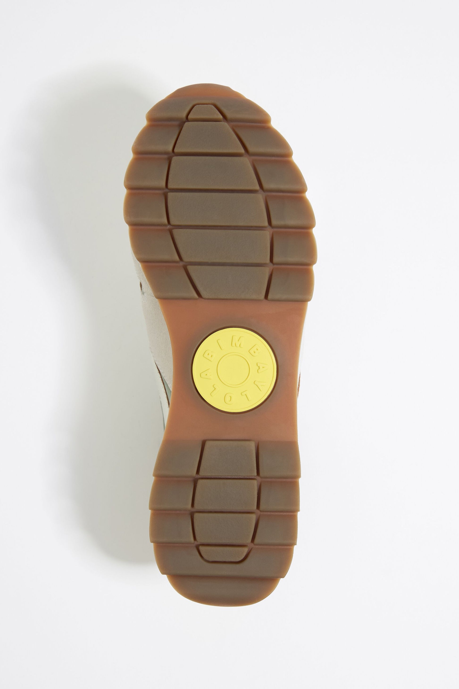 13 19 technical sneaker in khaki. Model crafted in split leather and technical fabric pieces. Scalloped upper with leather side logo, logo tongue and contrast painted logo on the back. Customized stabilizer, three-tone midsole and sole with serrated finish.