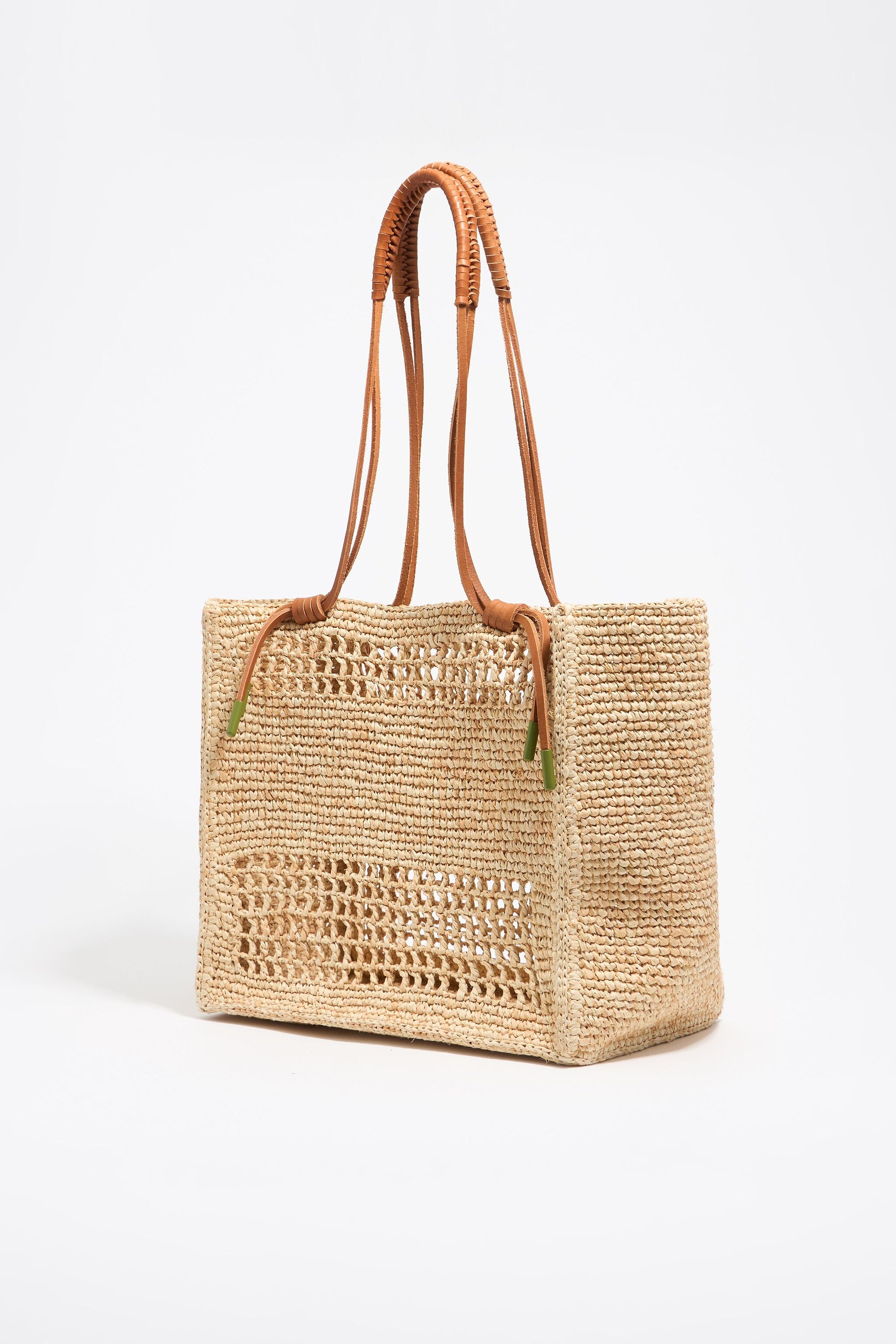 Large natural raffia shopper bag