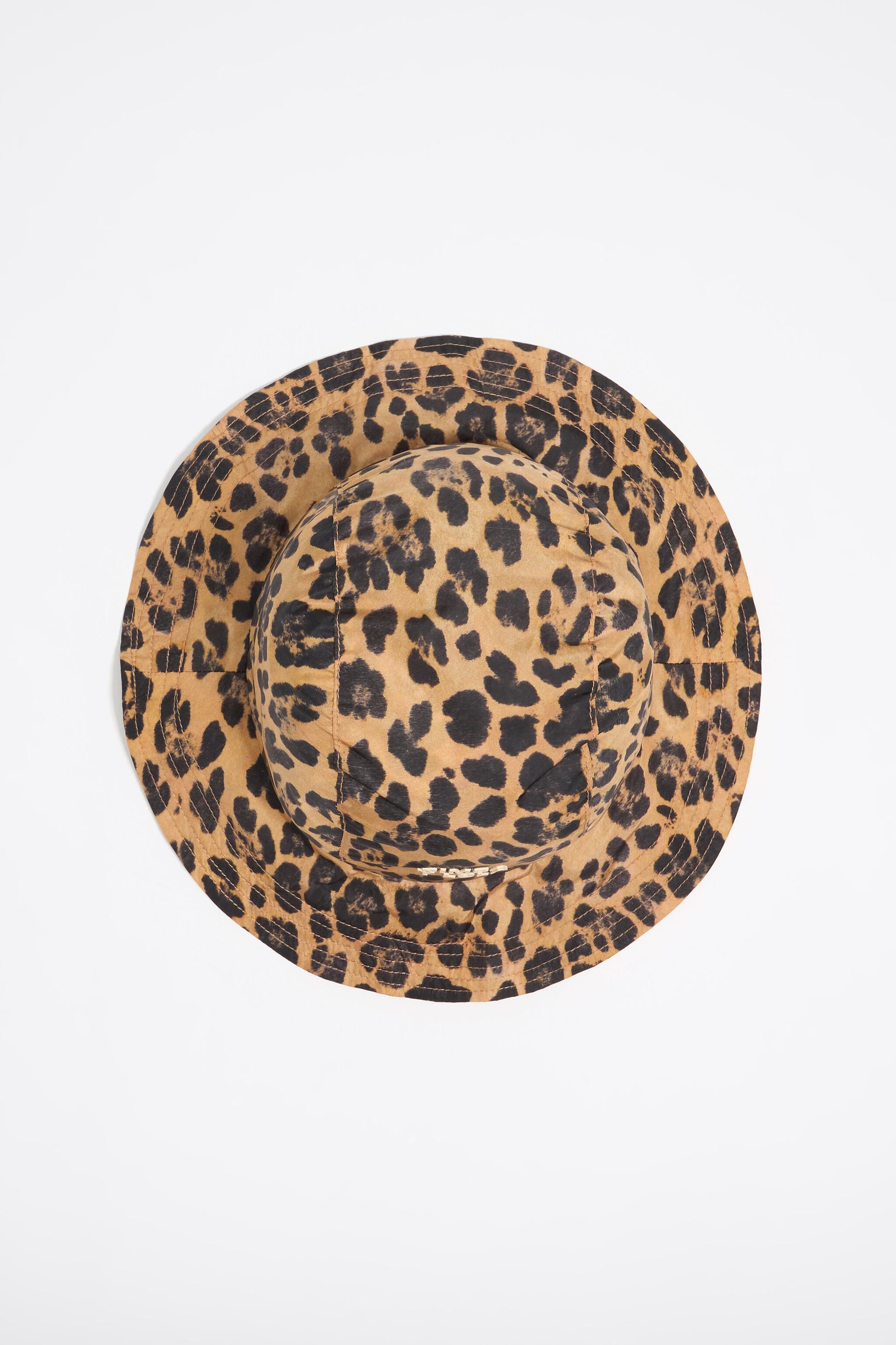 Nylon bucket hat with leopard print.