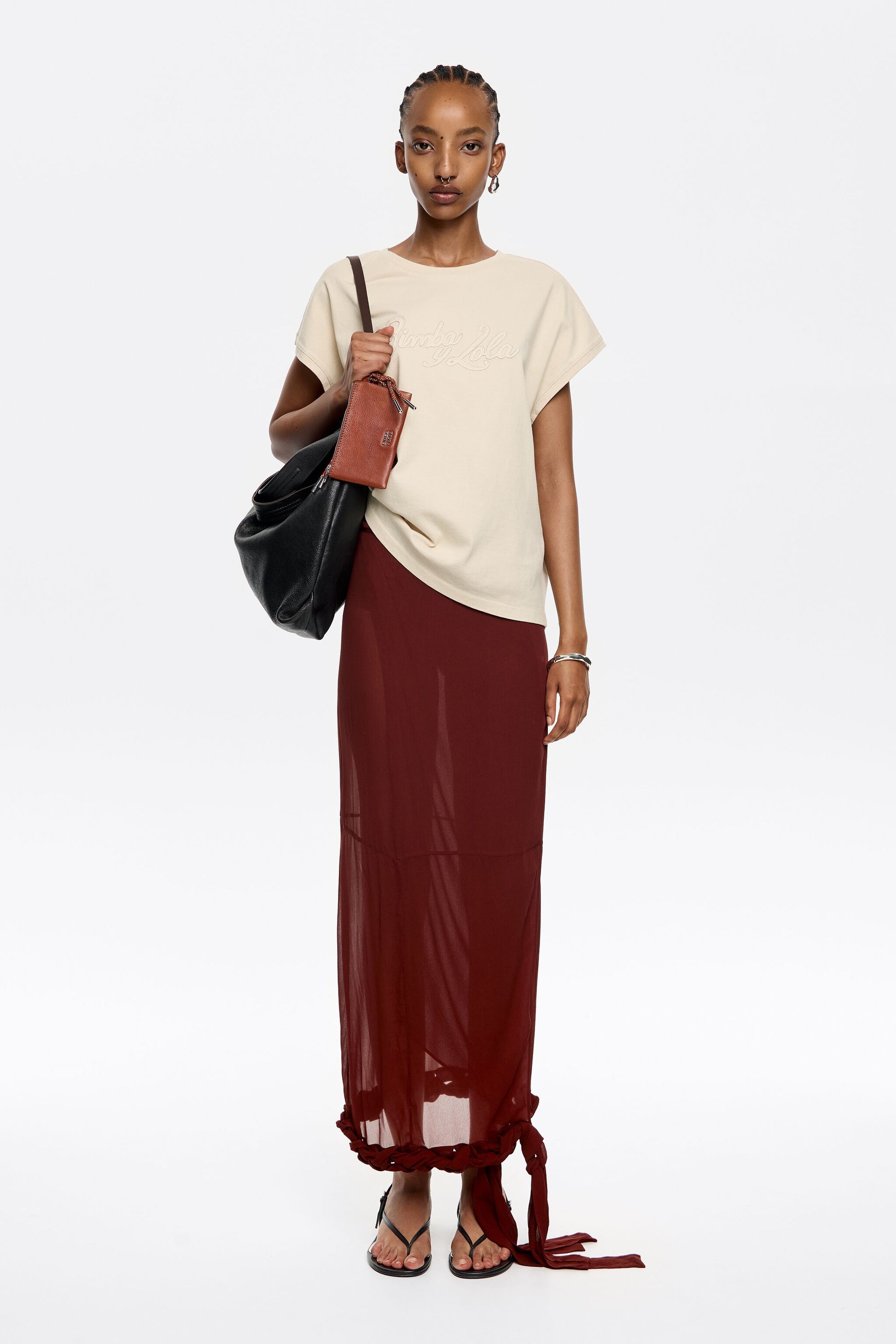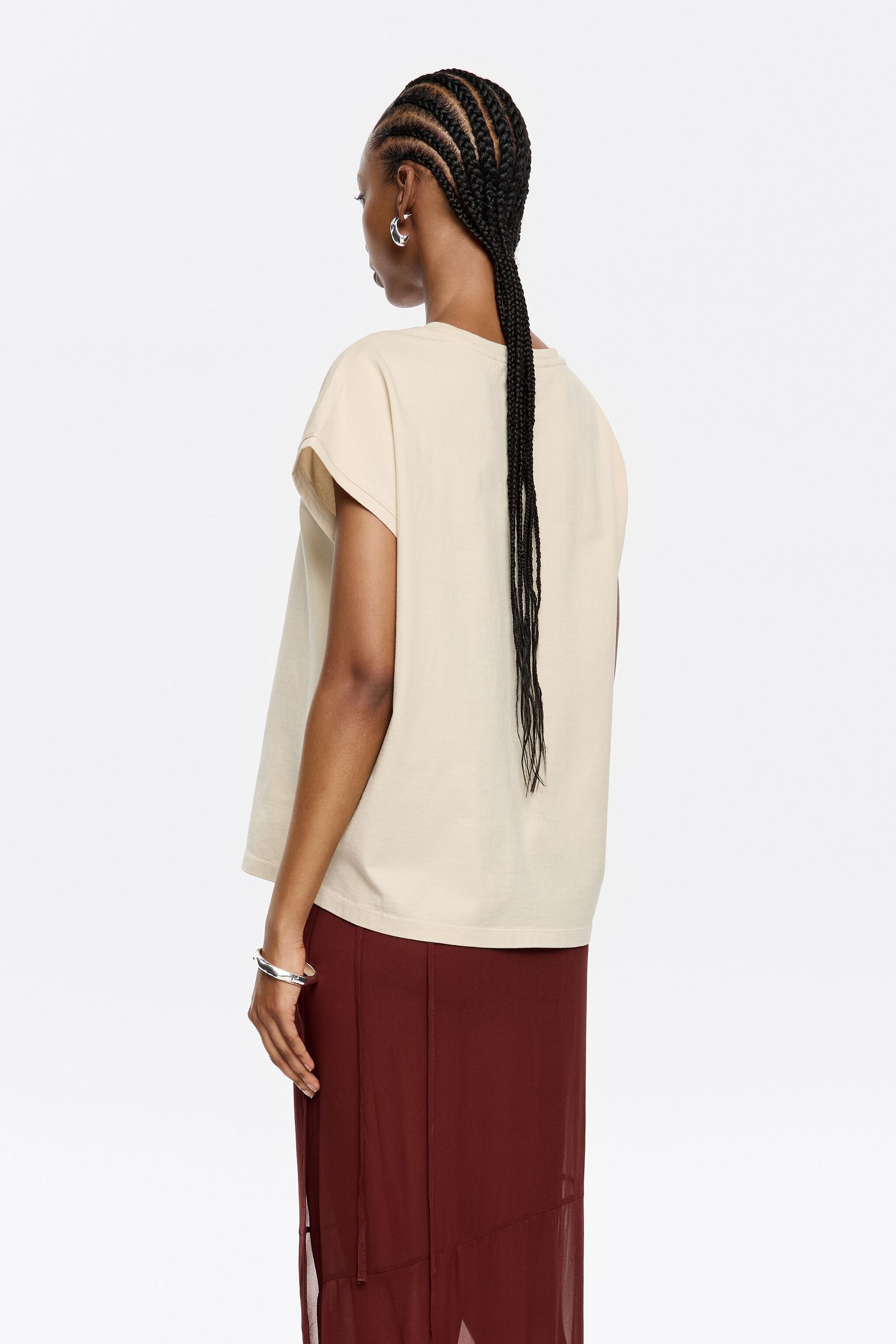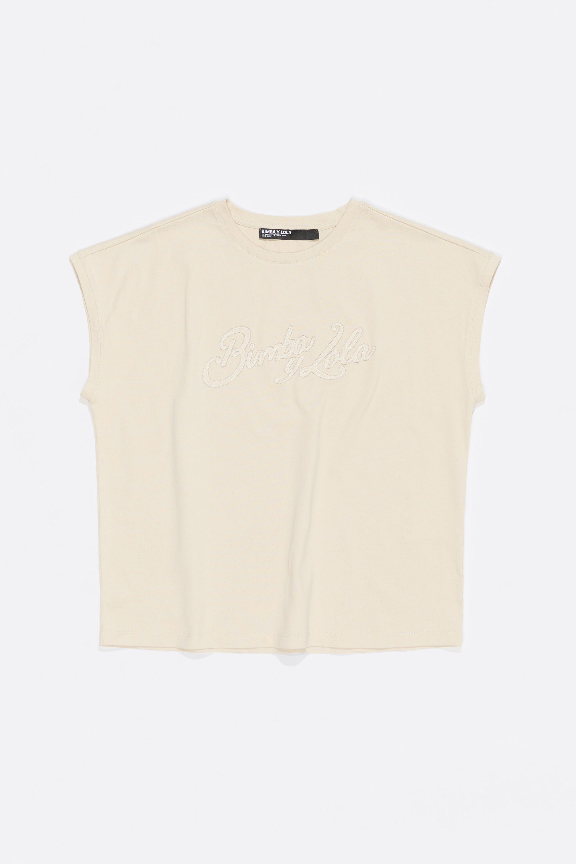 Cotton T-shirt in light khaki. Straight cut with crew neck, short batwing sleeve and exterior customized with embossed logo.