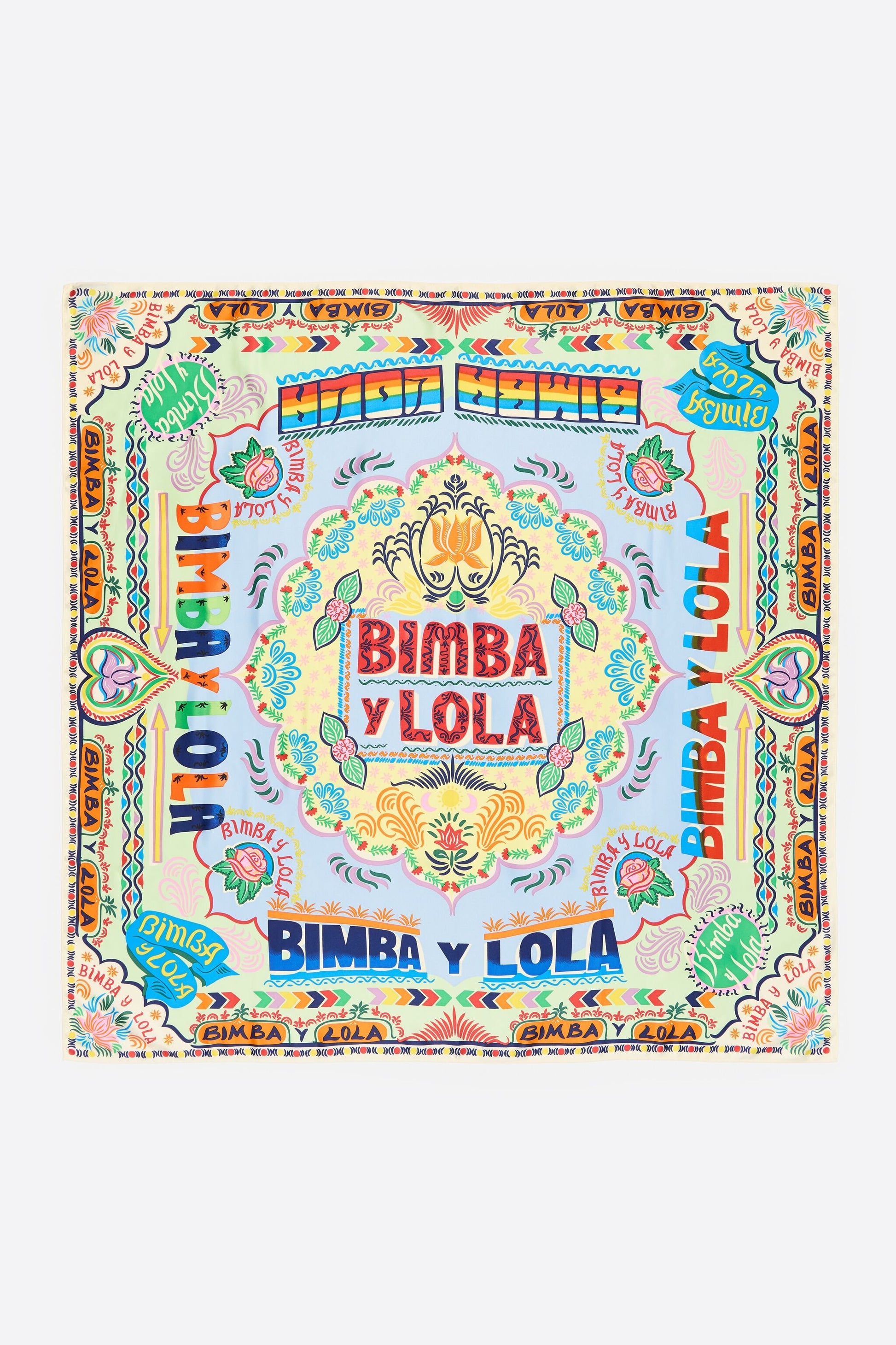 Scarf with India-inspired logo print on a lime background.