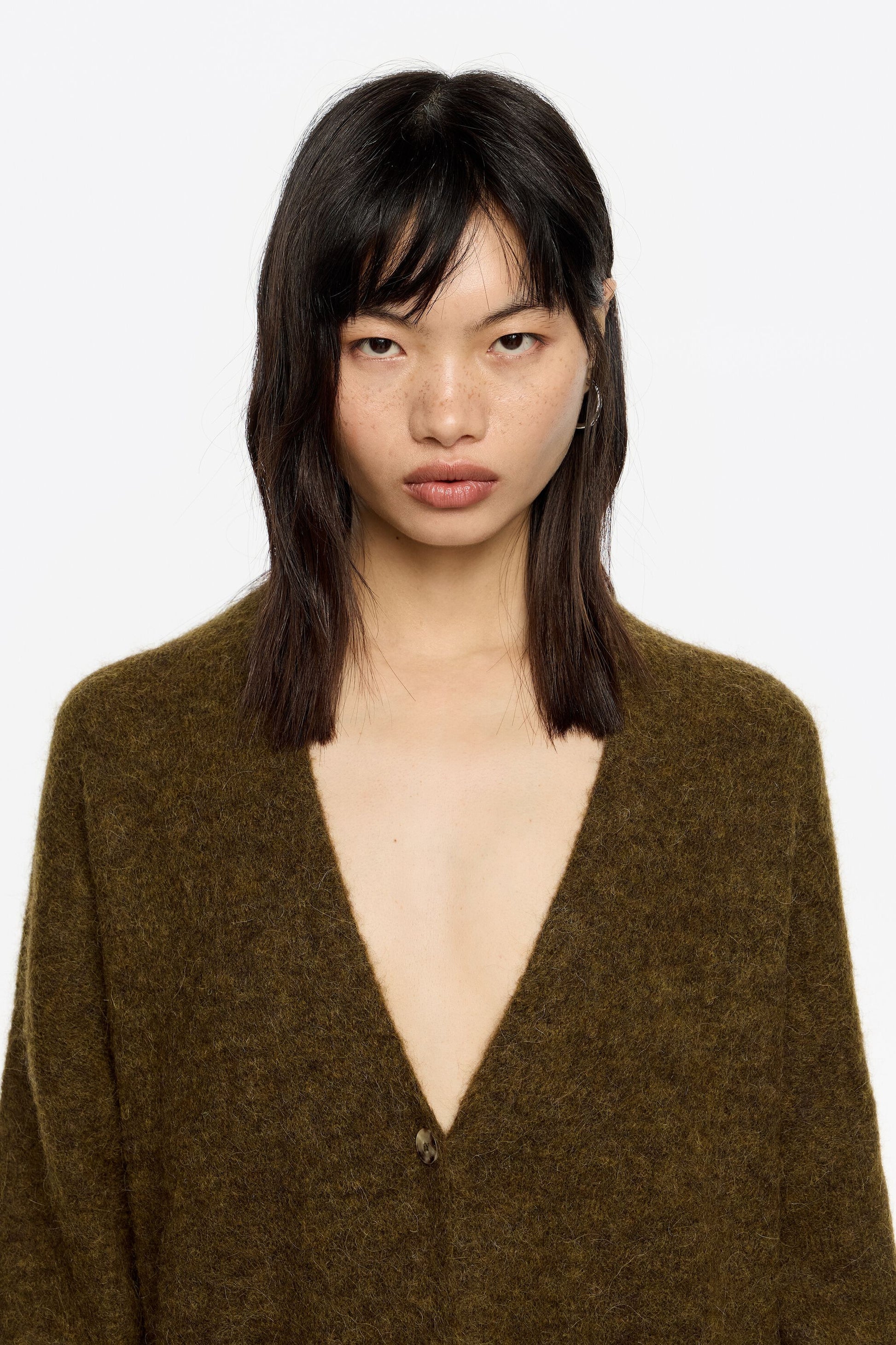 Long khaki alpaca cardigan