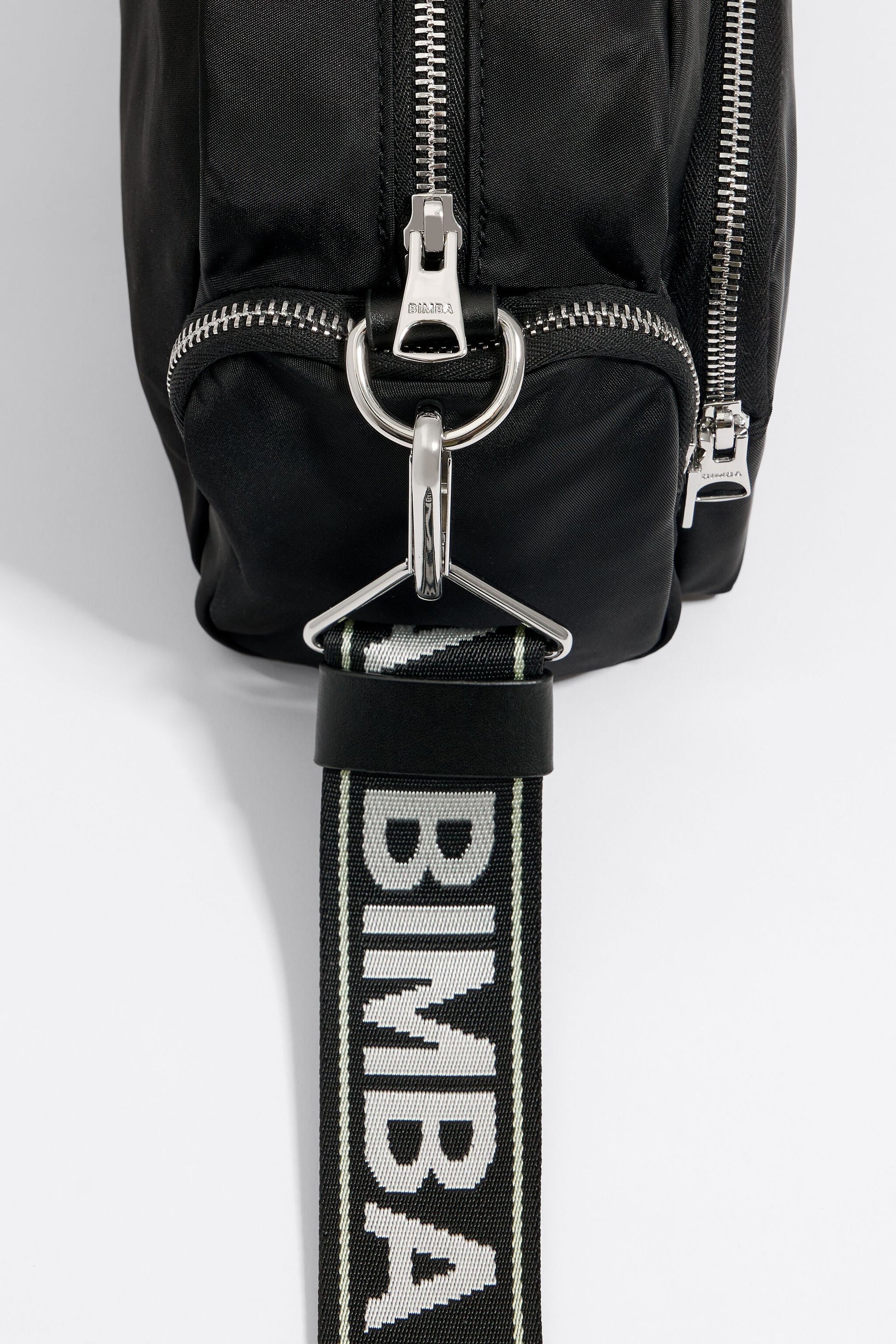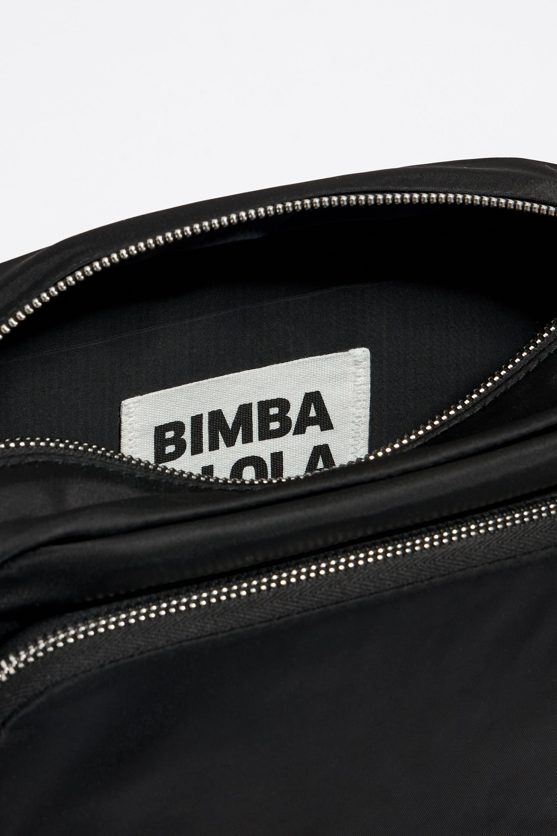 Nylon crossbody bag in black. Medium model with several pockets, zip fastener and removable logo strap. Exterior customized with metallic logo.