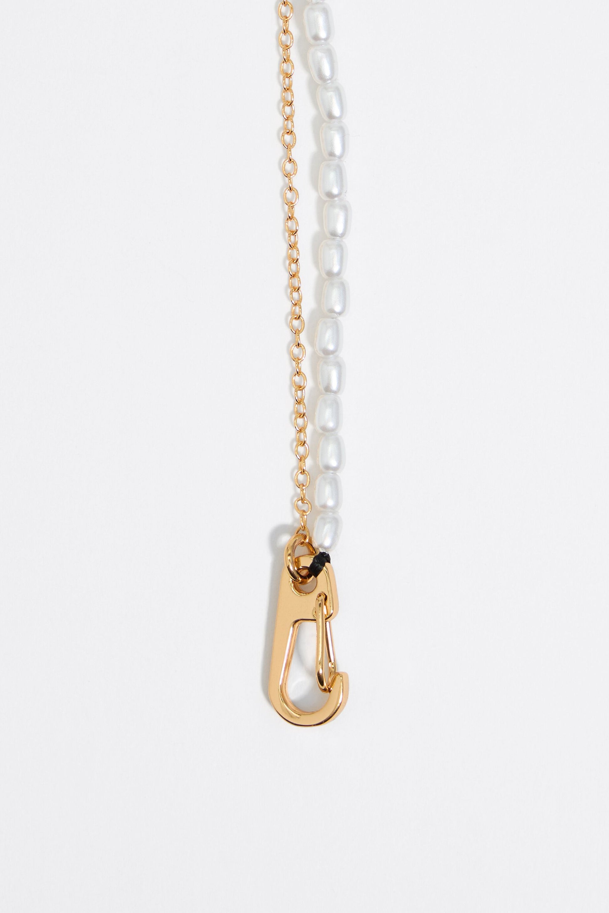 Double-layer necklace with pearls and gold chain with crystals. Model customized with engraved logo.