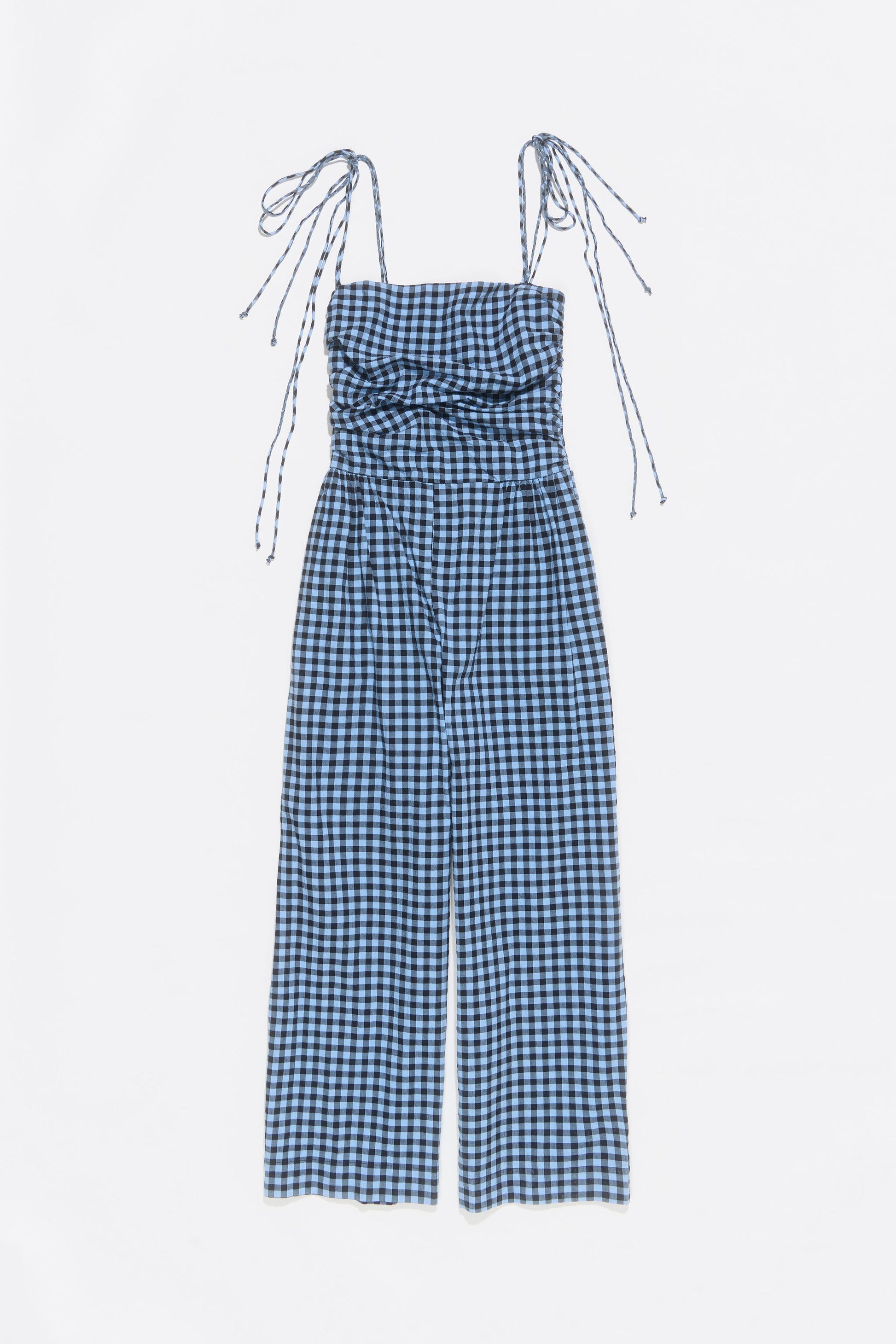 Powder blue checked textured jumpsuit