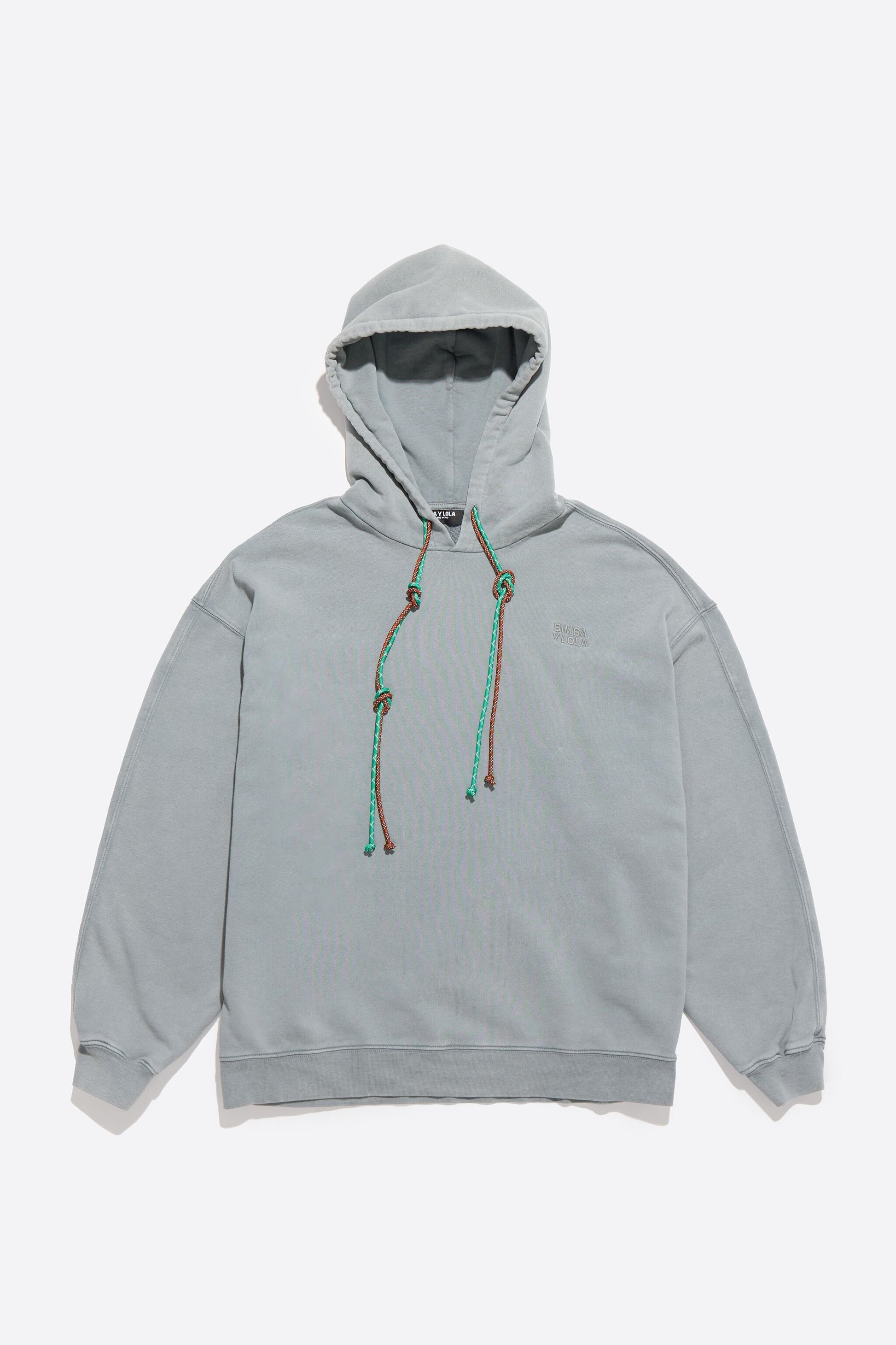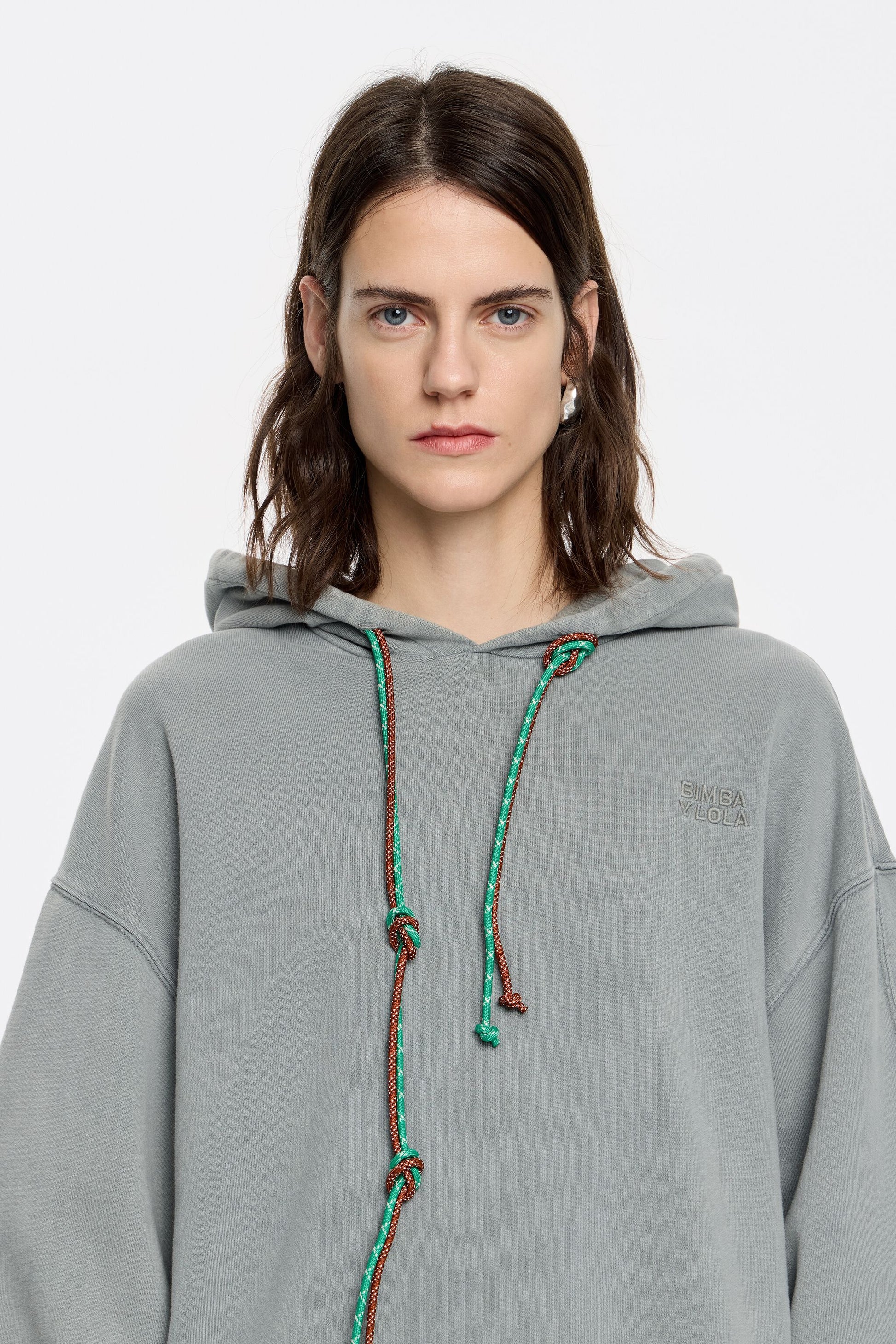 Cotton sweatshirt in powder green. Oversize cut, crew neck with adjustable hood with customized drawstrings, and long sleeve. Exterior customized with embroidered logo.