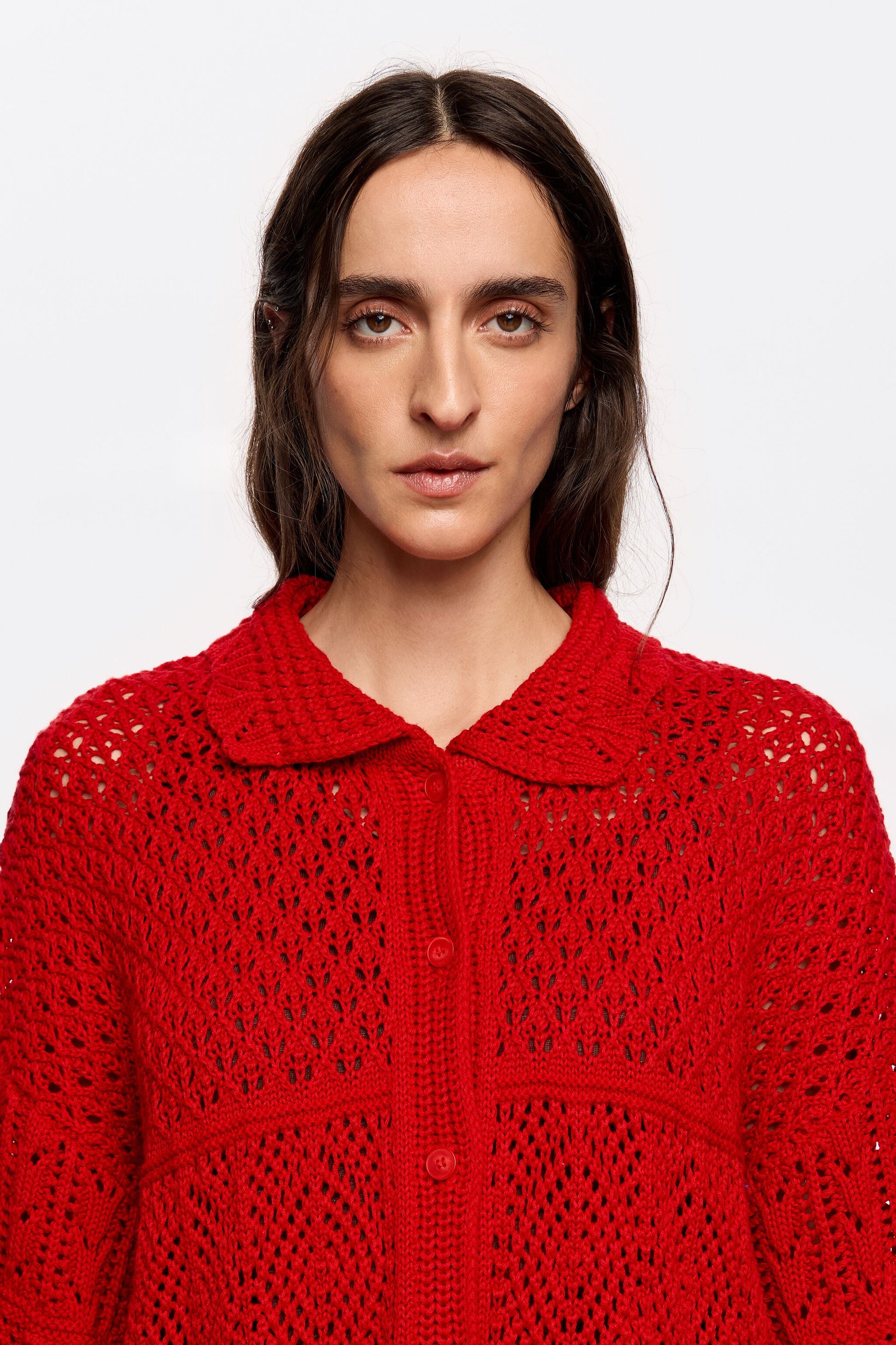 Red oversize crochet cardigan