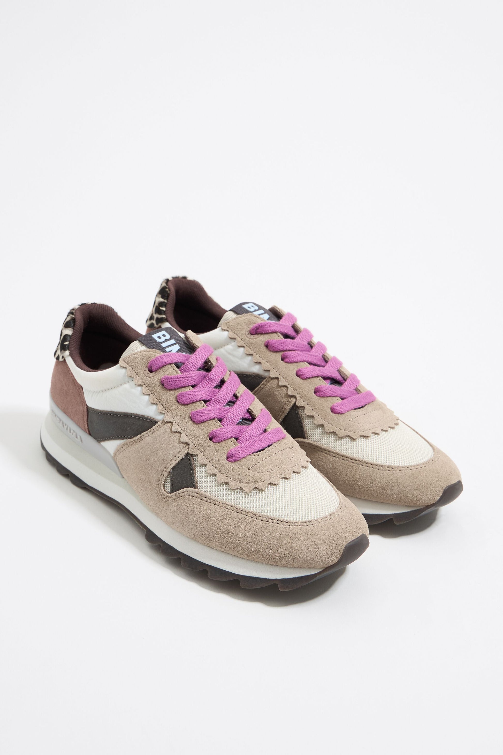 13 19 technical sneaker in sand. Model crafted in split leather and technical fabric pieces. Scalloped upper with split leather side logo, logo tongue and contrast painted logo on the back. Customized stabilizer, three-tone midsole and sole with serrated finish.