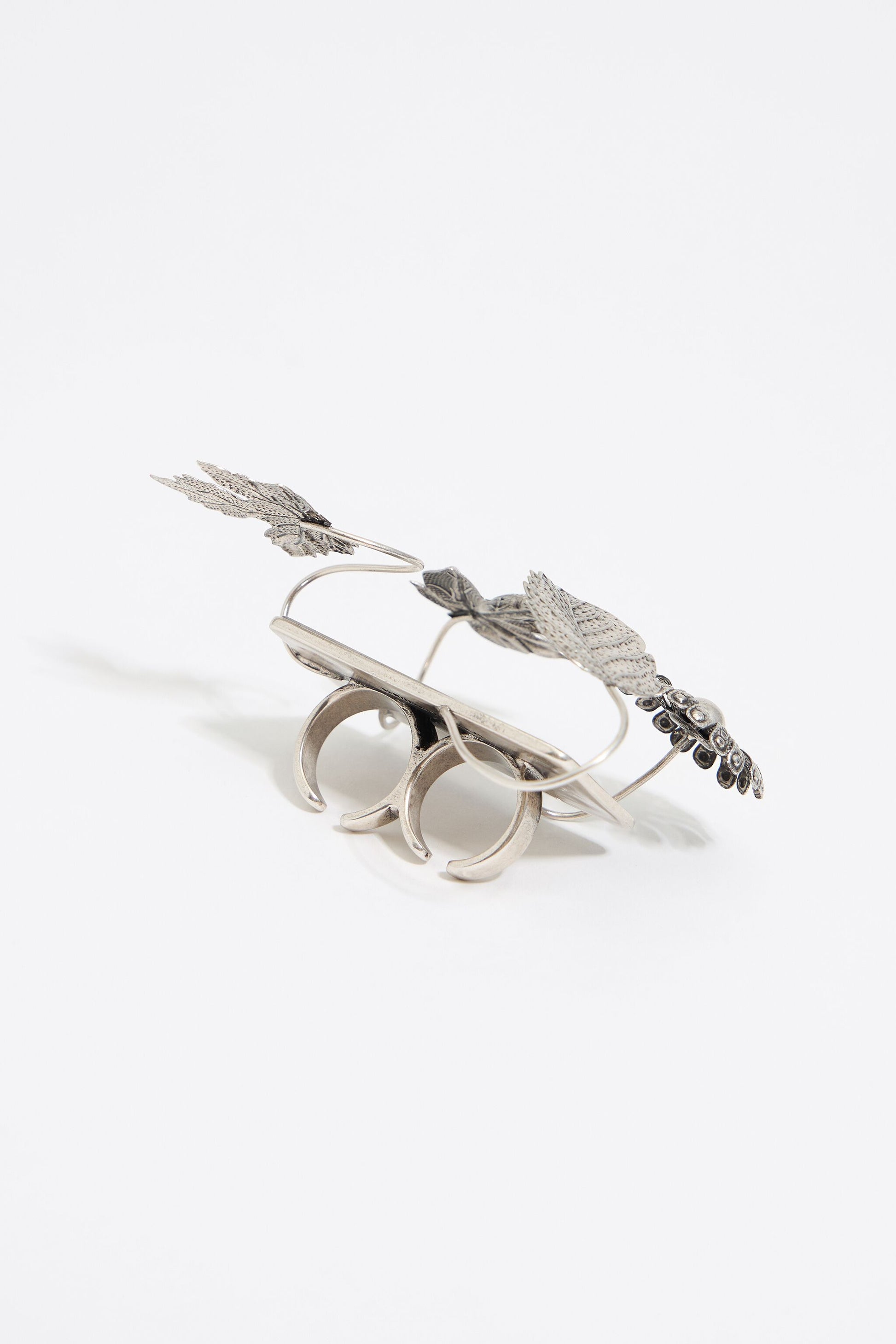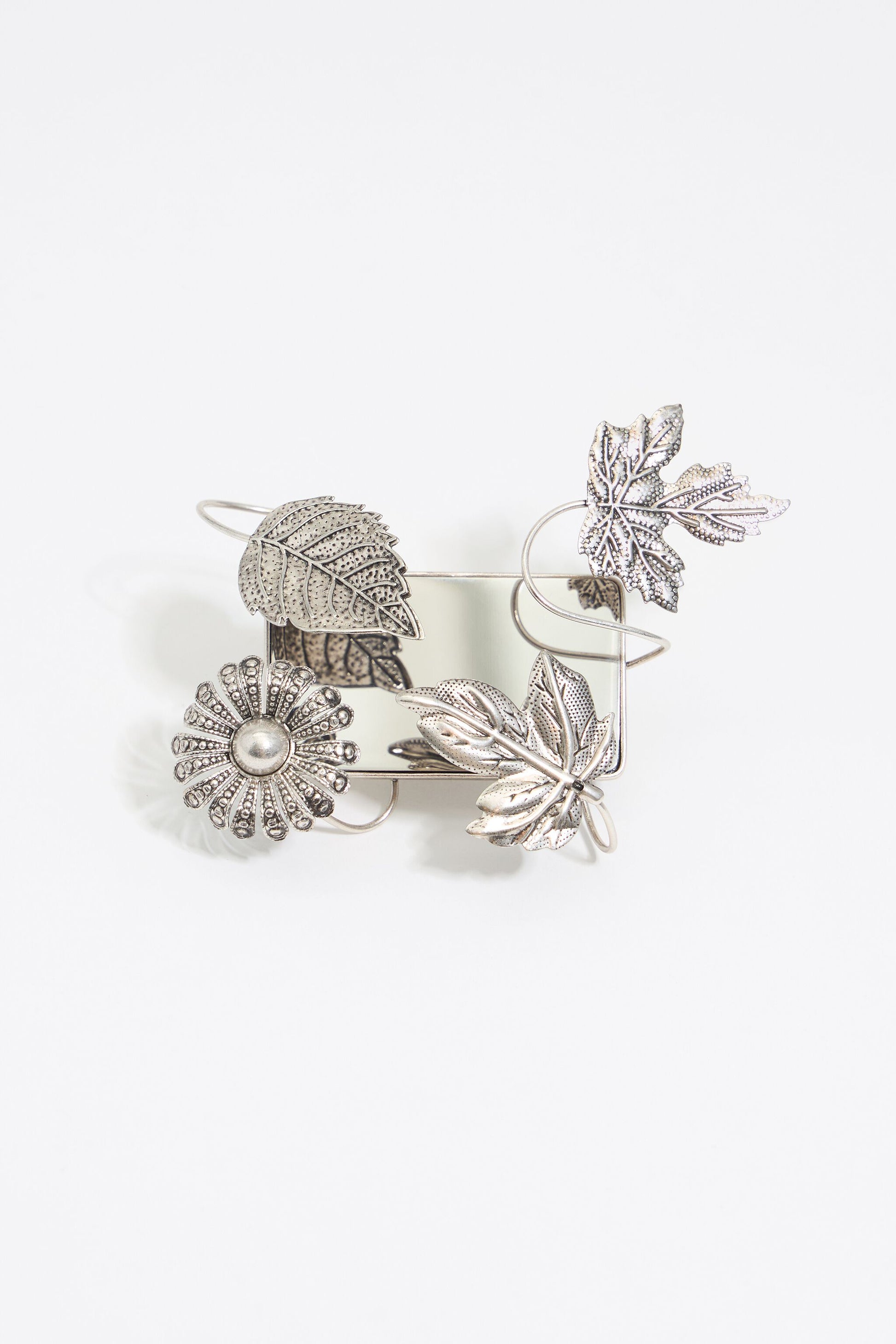 Silver leaves and mirrors double ring