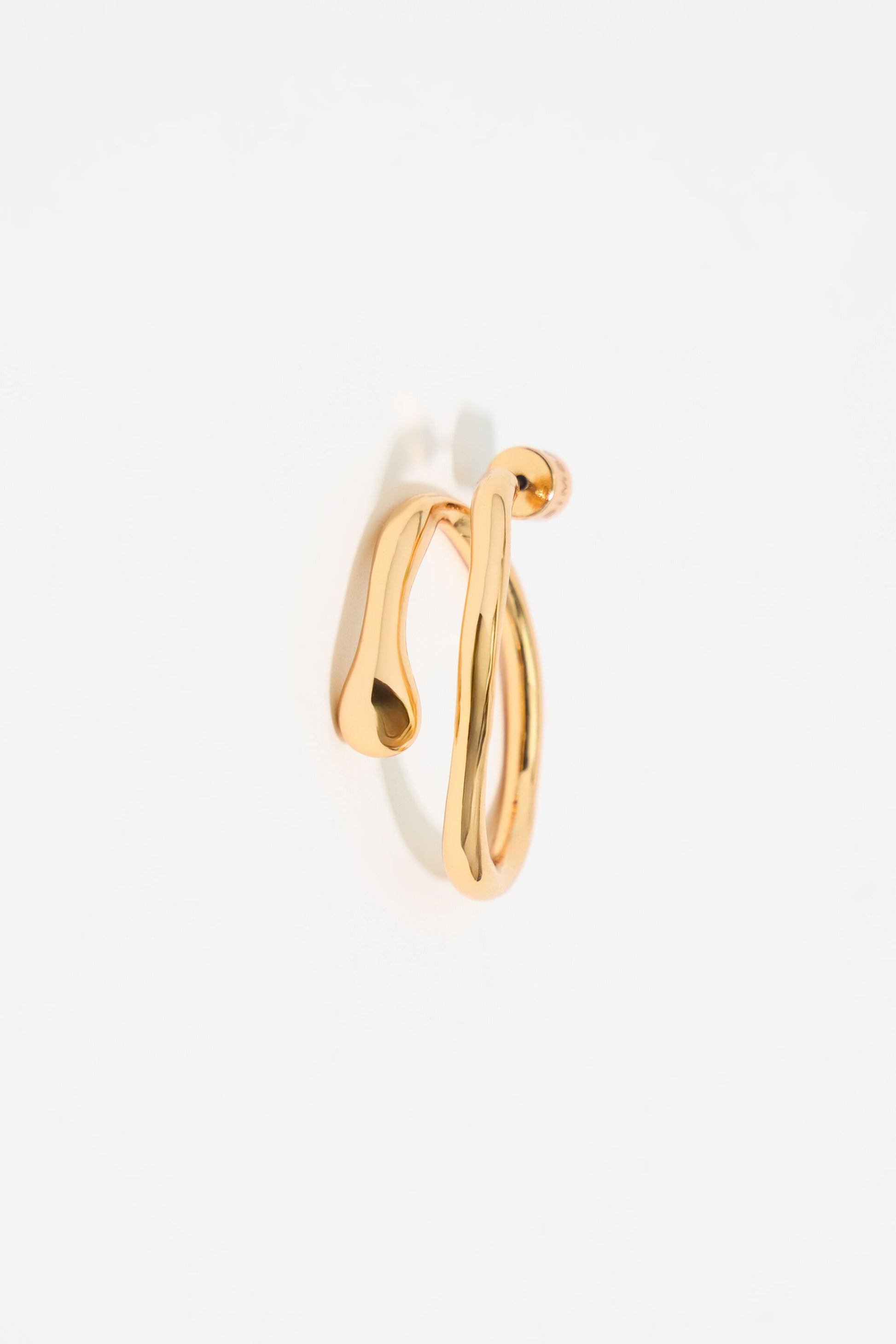 Textured metal hoop earrings in gold. Model customized with engraved logo.