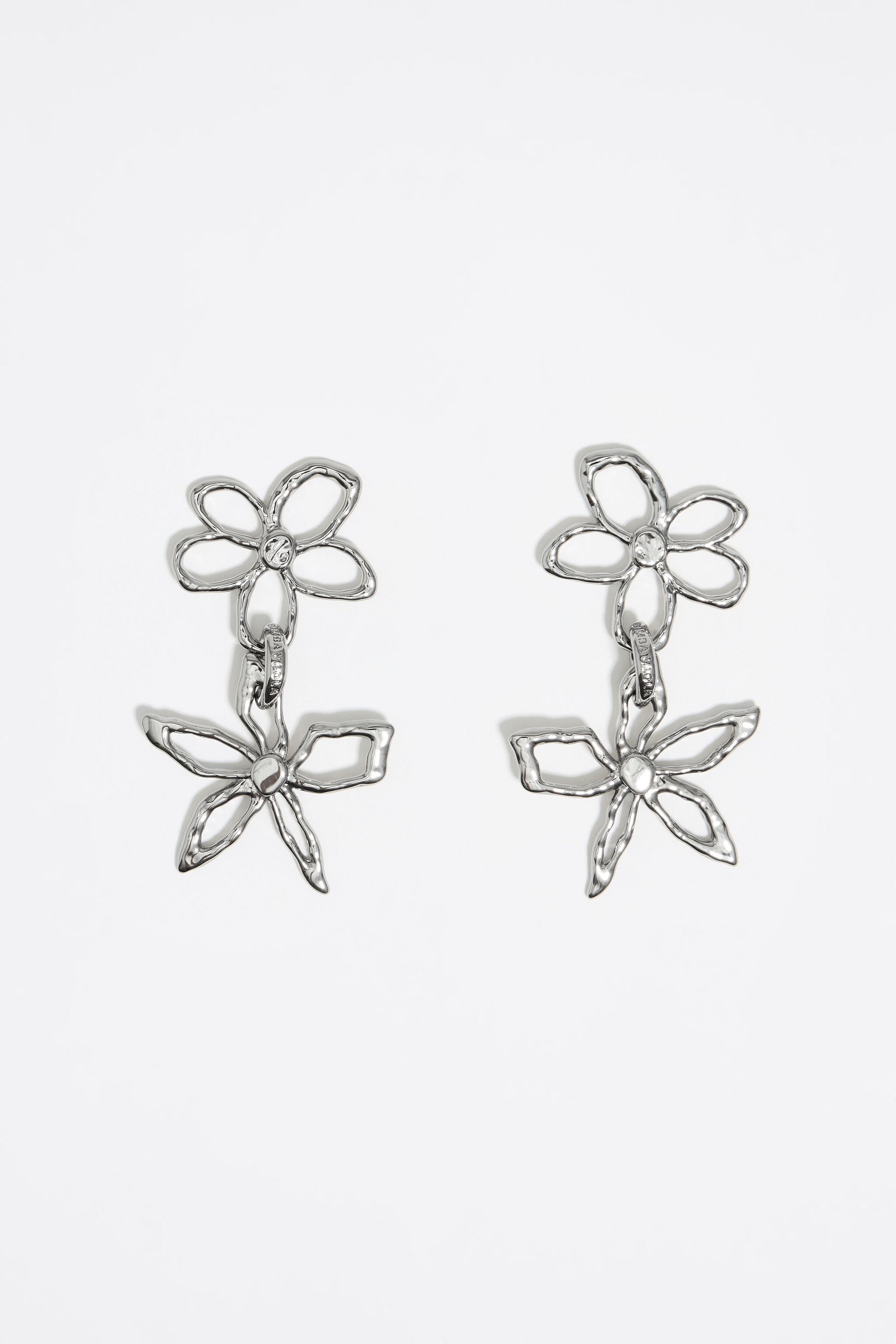 Textured silver-tone earrings in the shape of flowers.