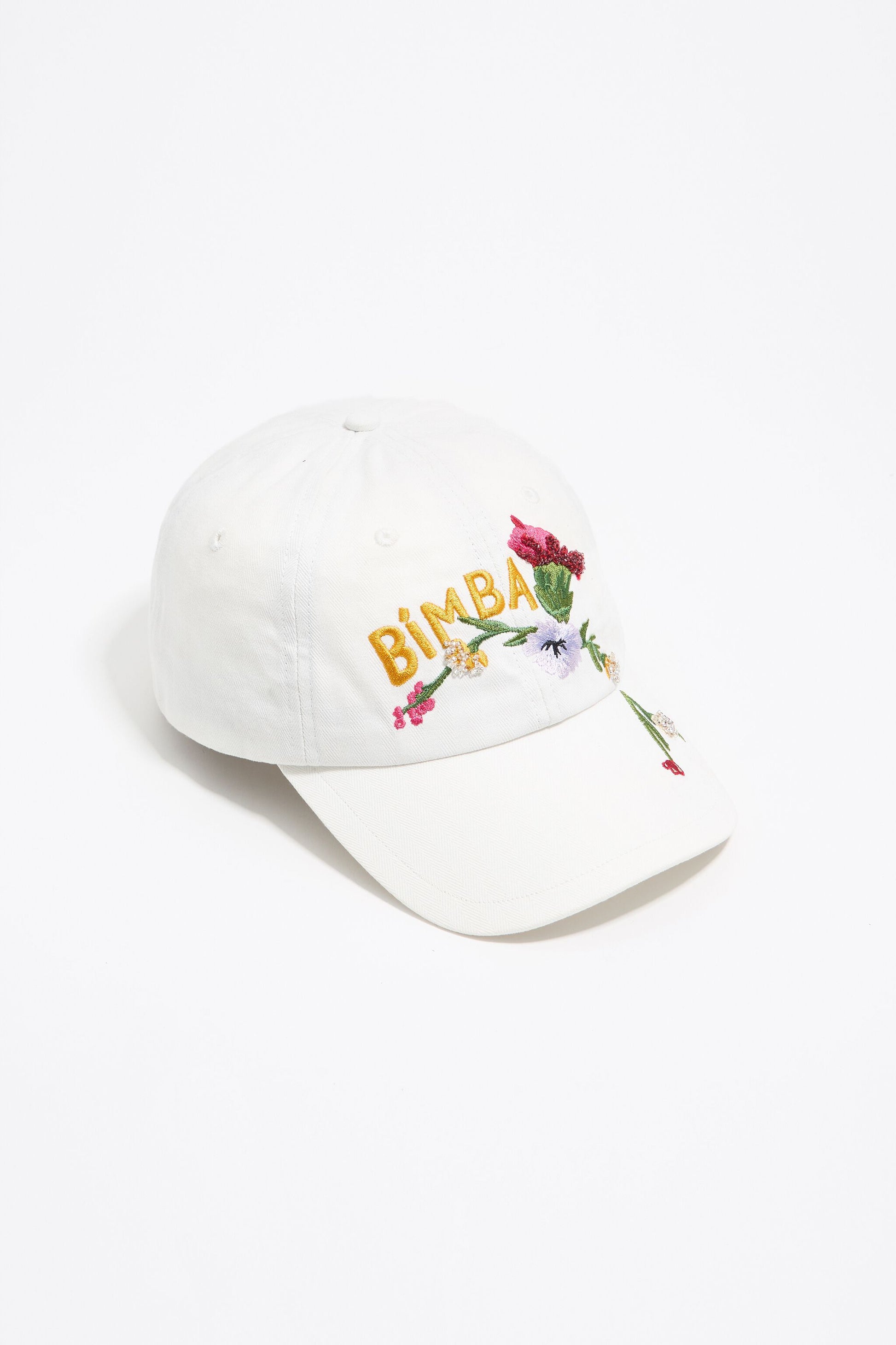 Cotton cap with flowers in off-white.