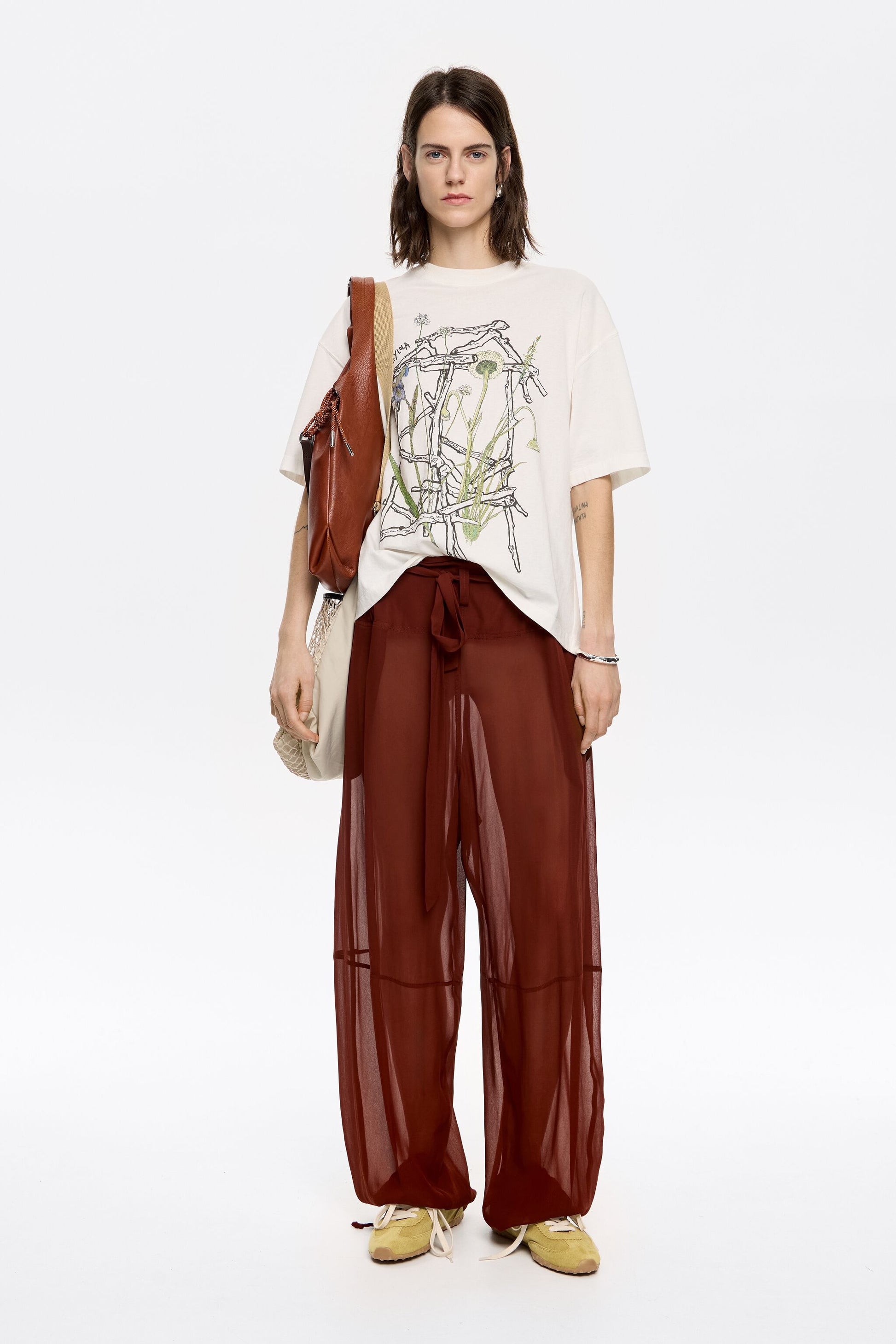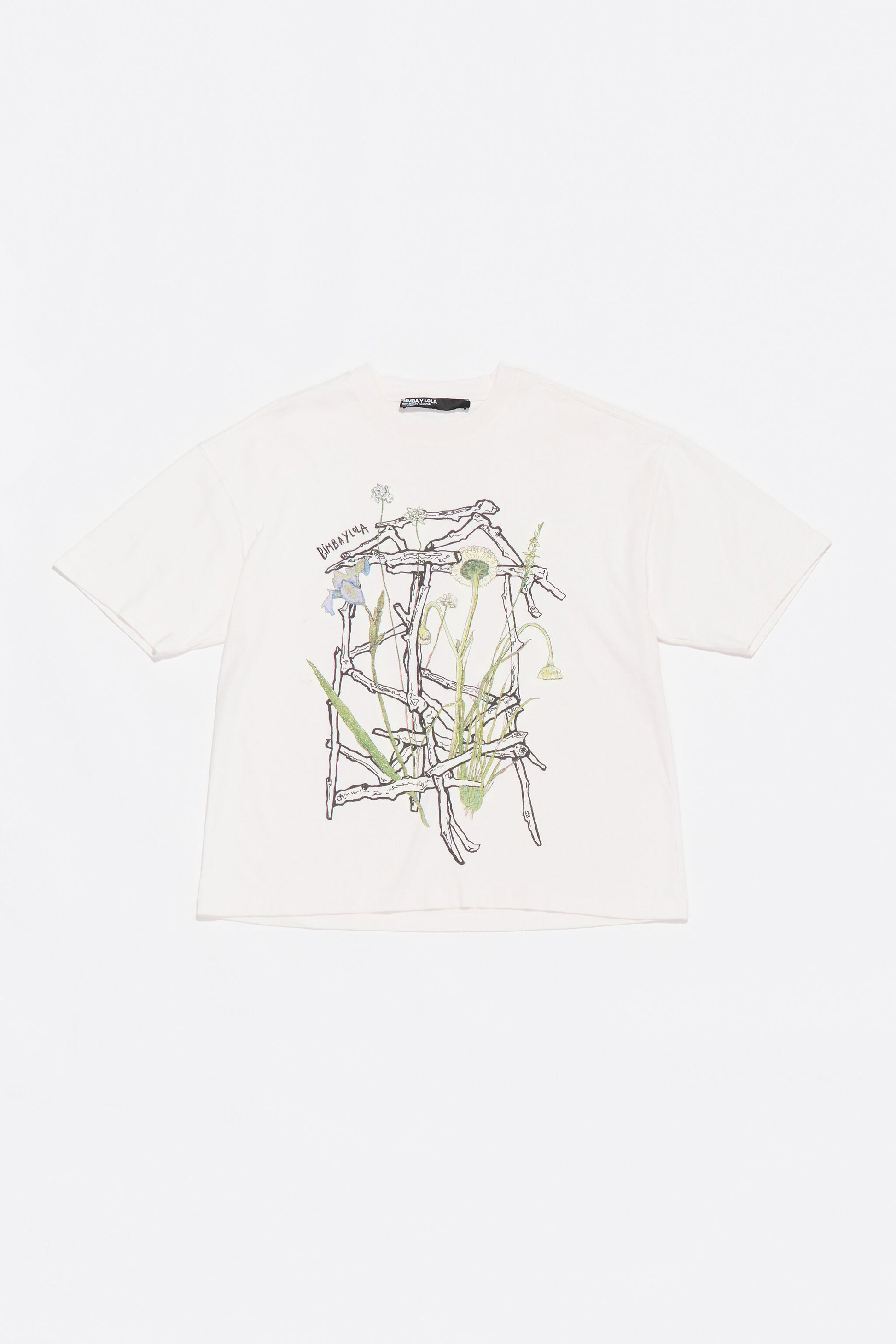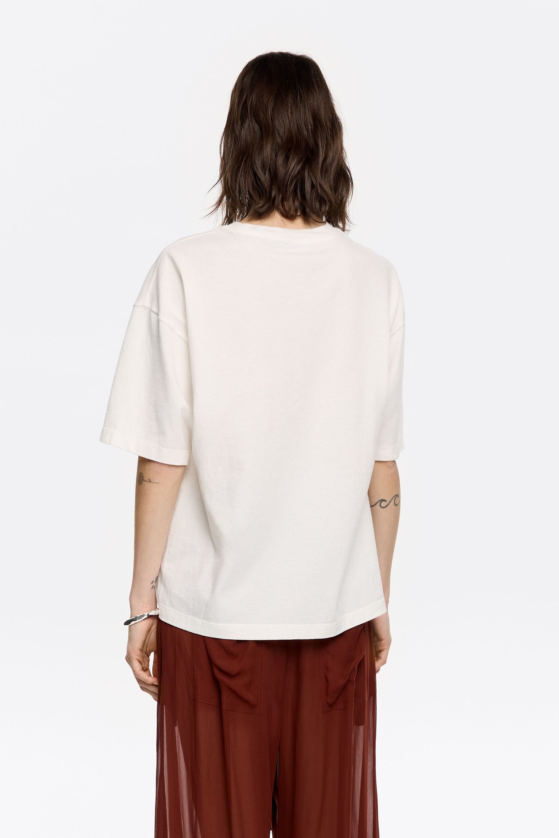 Cotton T-shirt in off-white. Oversize straight cut with crew neck, short sleeve and exterior customized with embroidered logo.