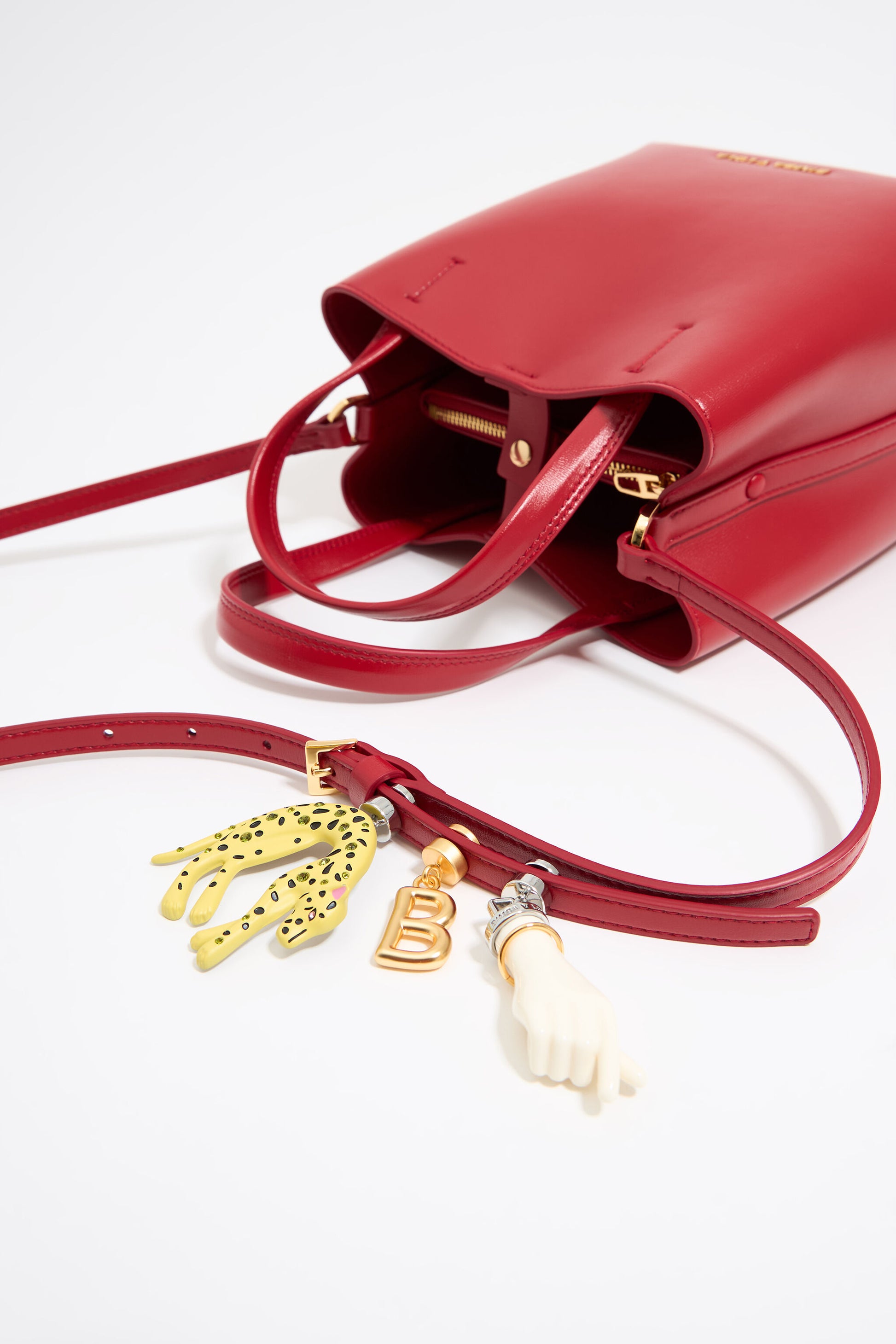 Panther-shaped bag charm with yellow crystals. Model customized with engraved logo.