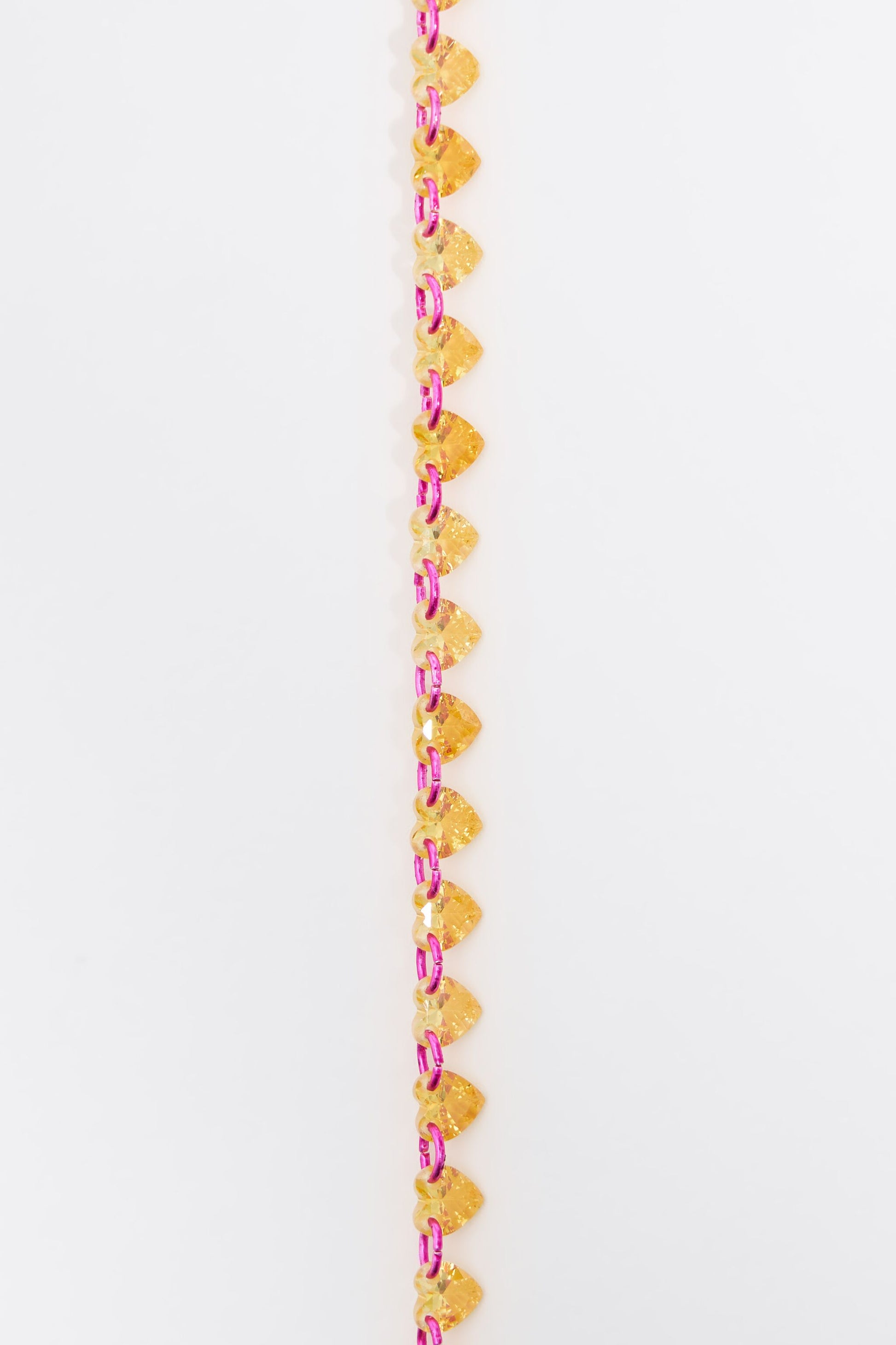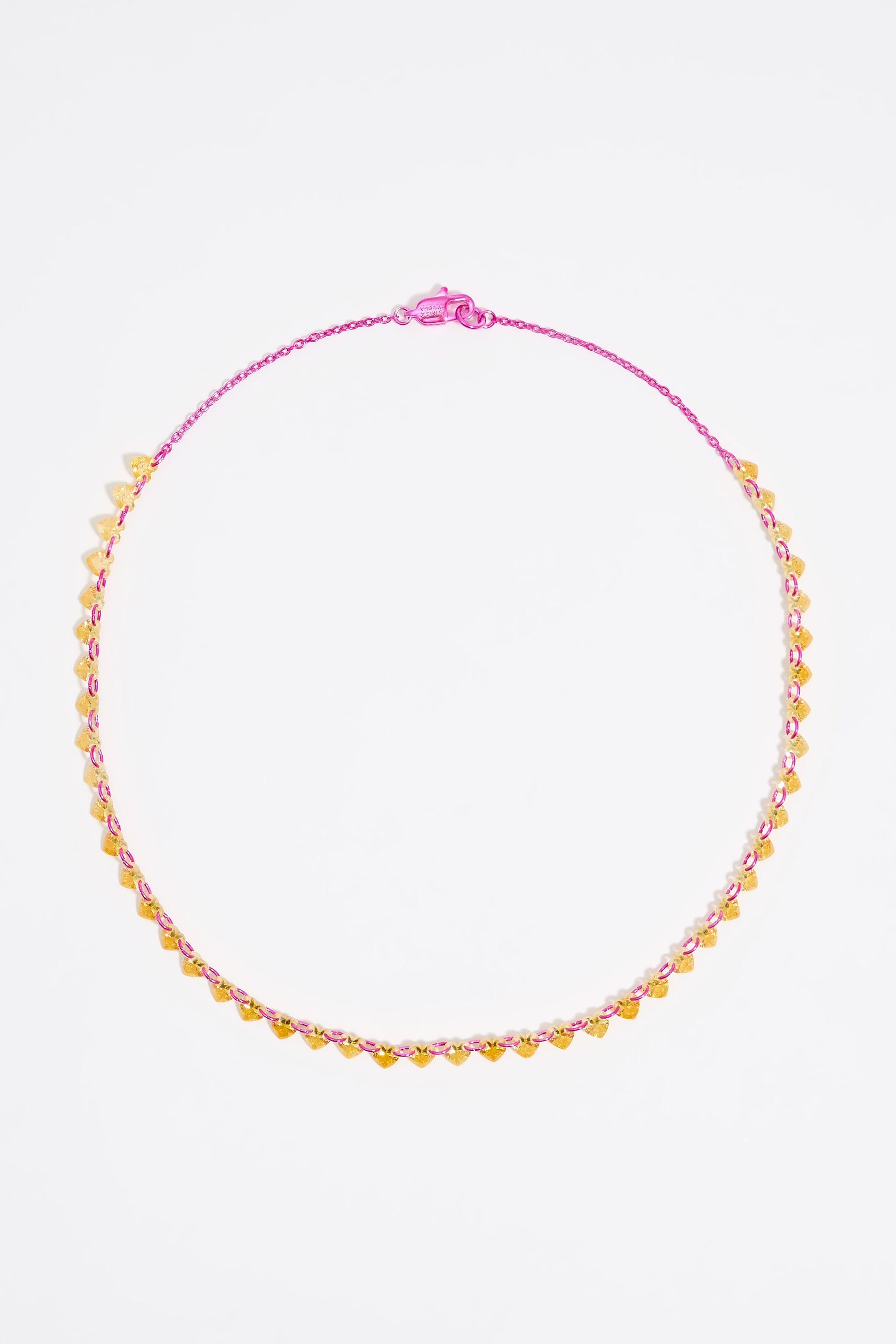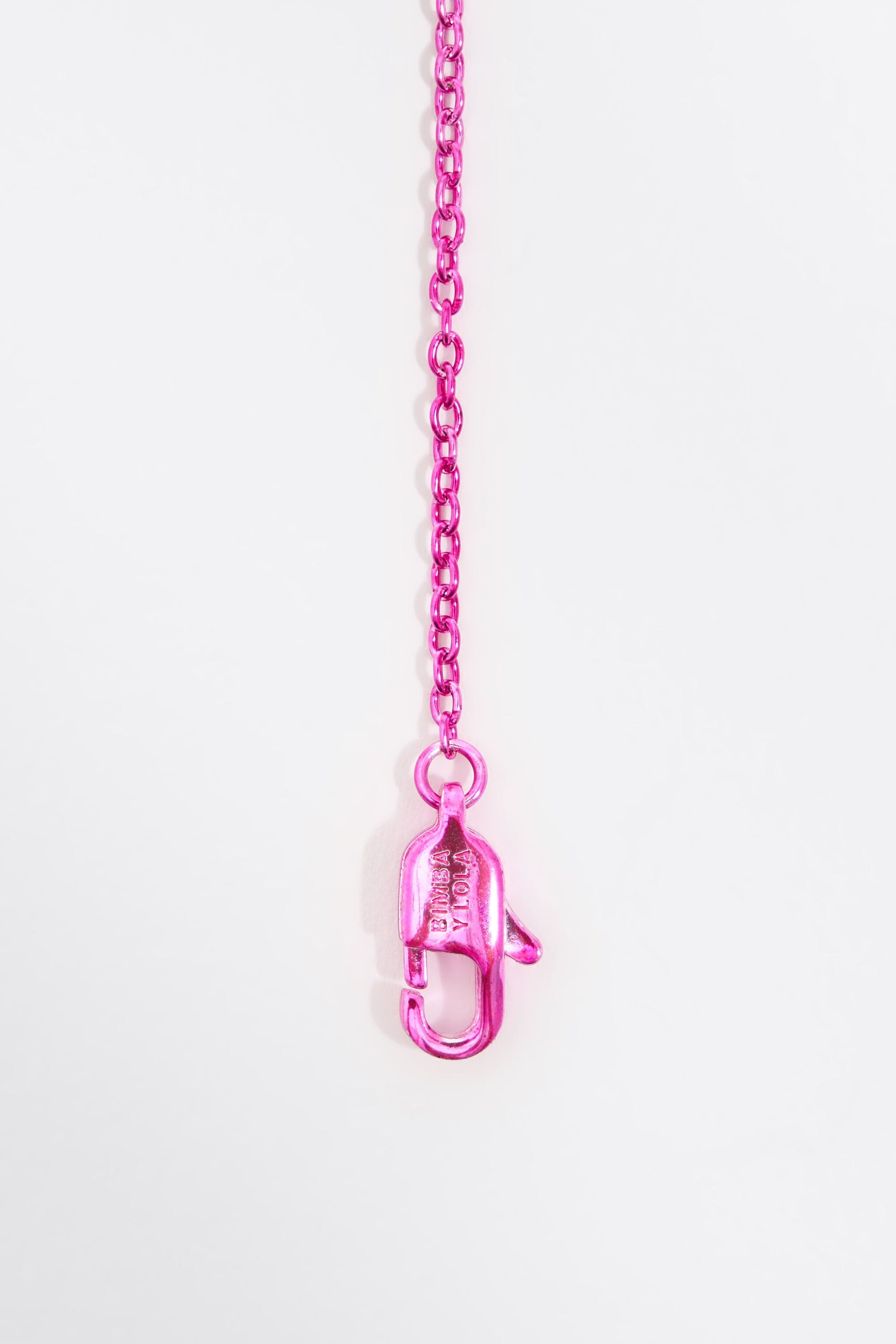 Necklace with pink hearts and crystals. Model customized with engraved logo.