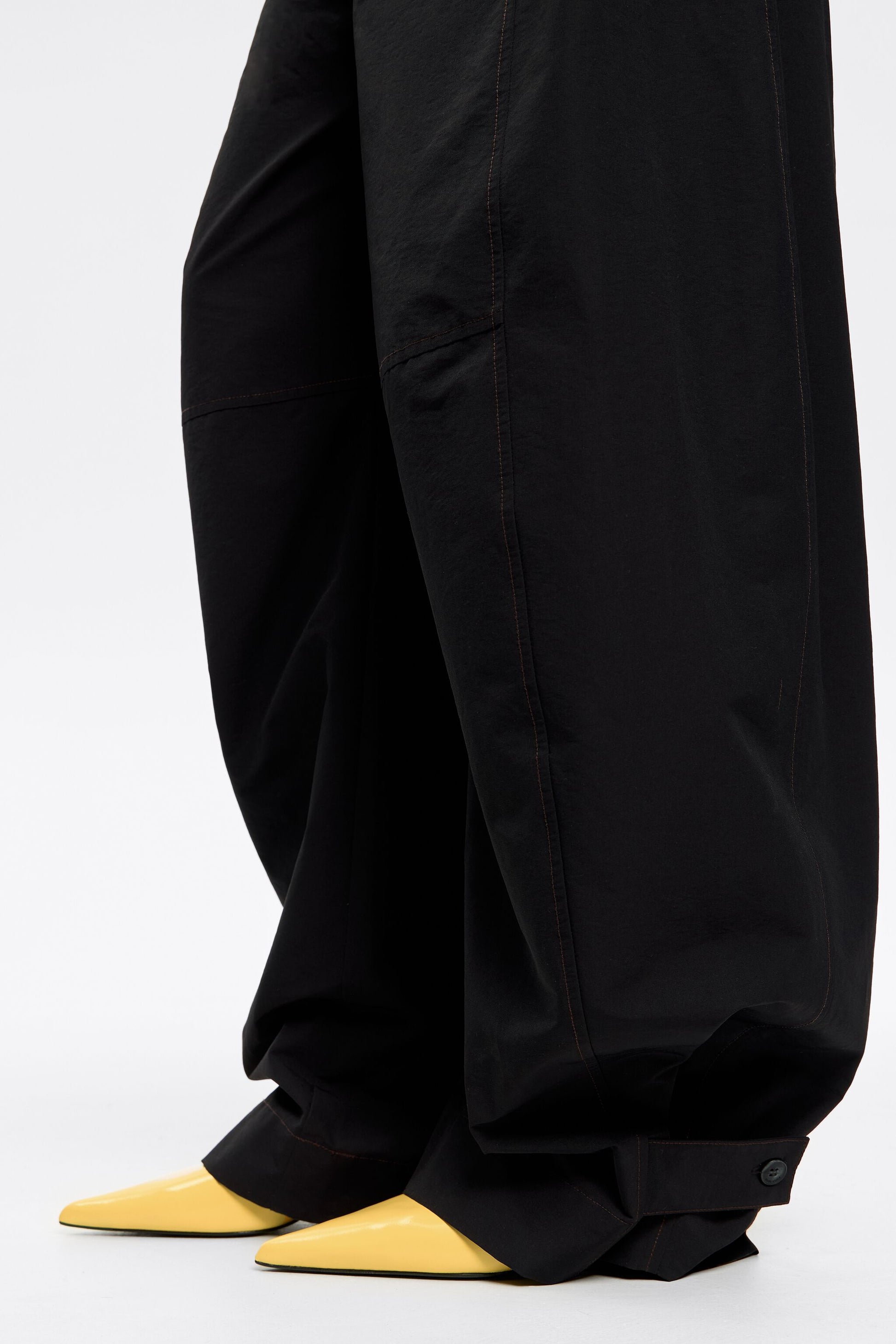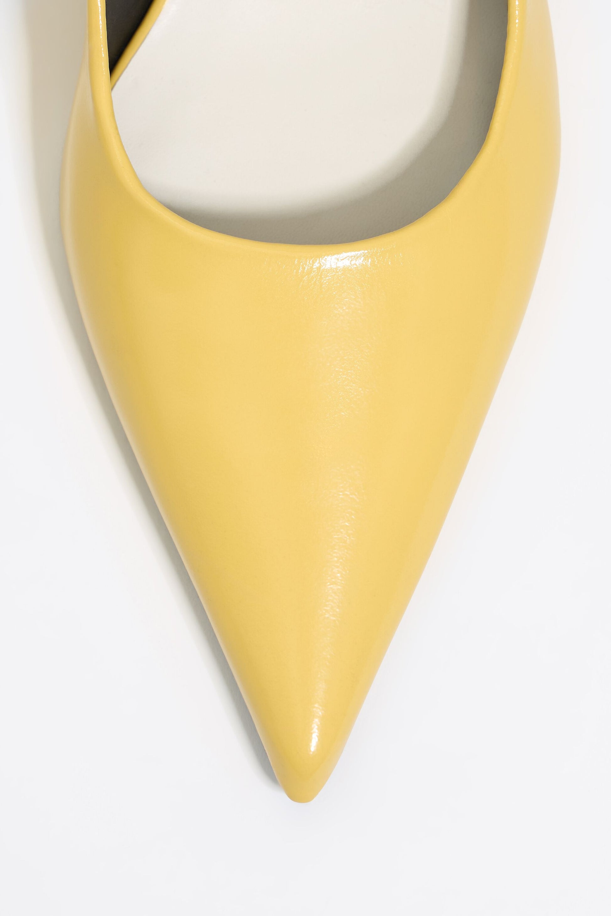 Smooth leather slingback court shoe in yellow. Model with pointed toe, square vamp with side posts, and a high heel. Leather insole with engraved logo and customized sole.